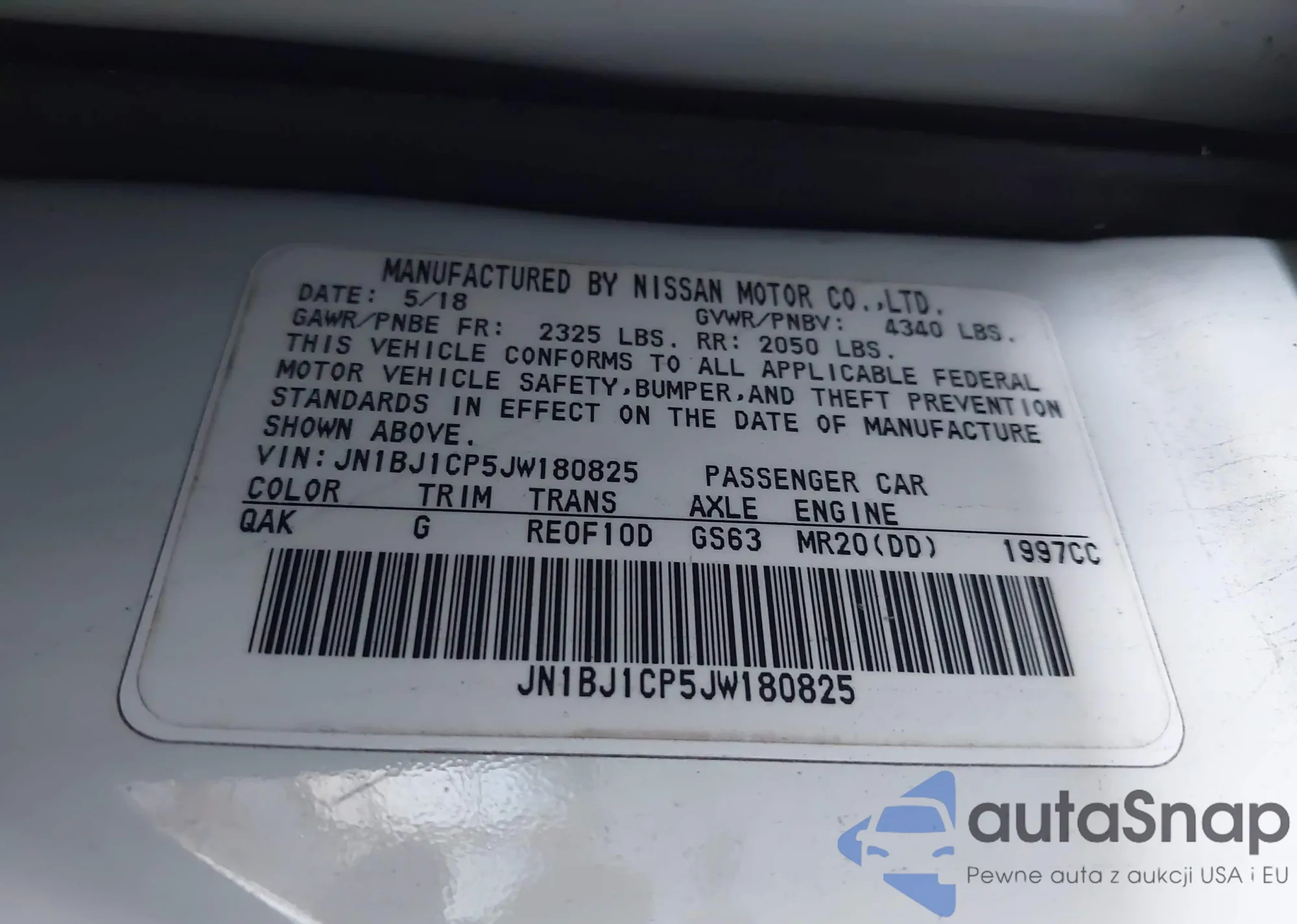 • VIN 5J6RE4H7XAL100120