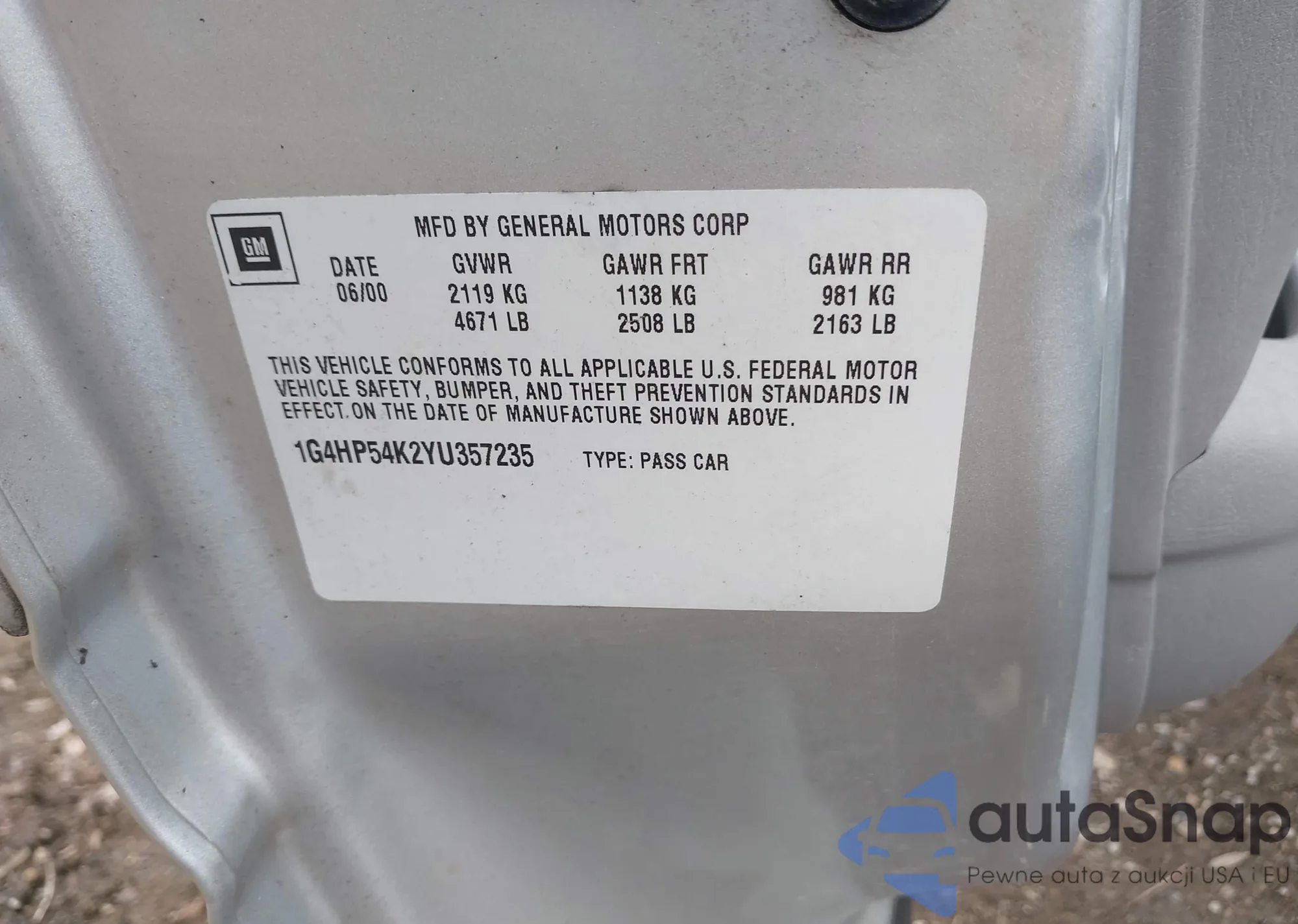 • VIN 1G4HP54K2YU357235