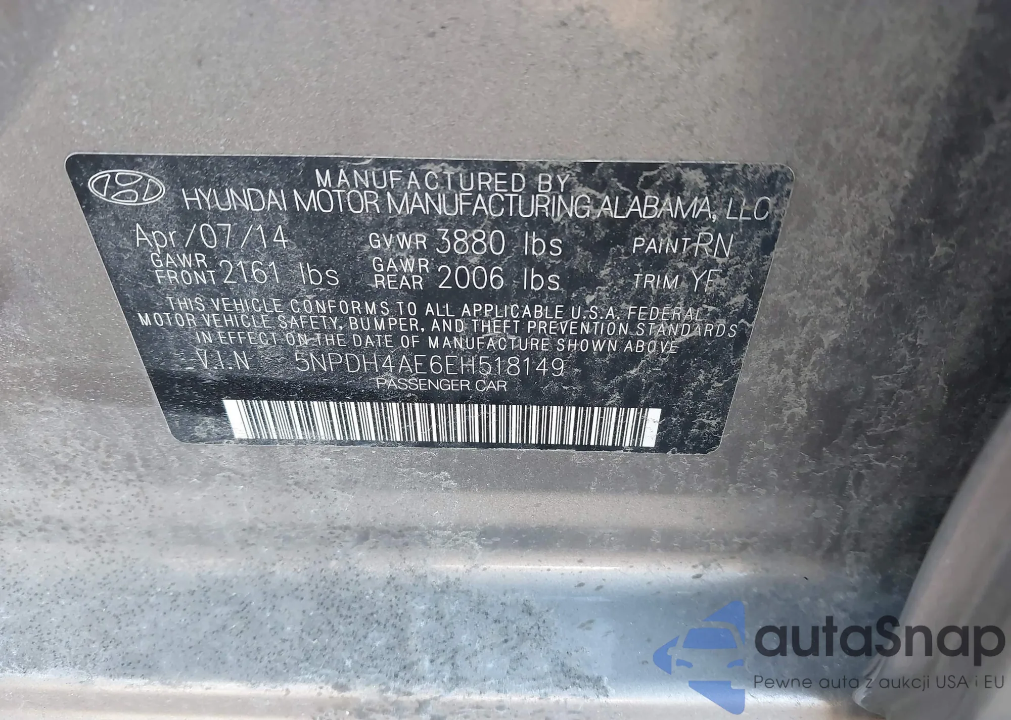 • VIN KMHGN4JE8GU126476