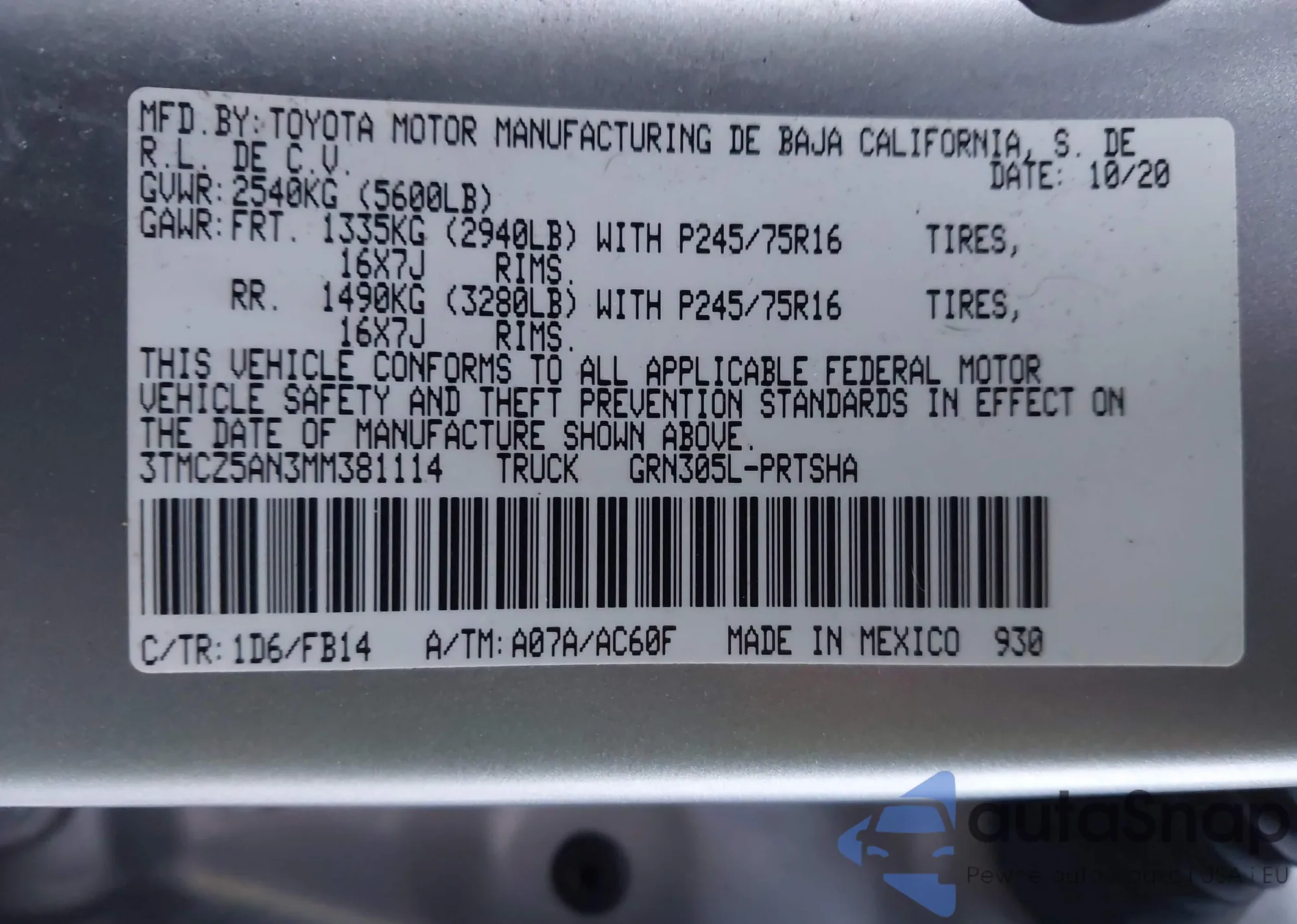 • VIN 3TMCZ5AN3MM381114