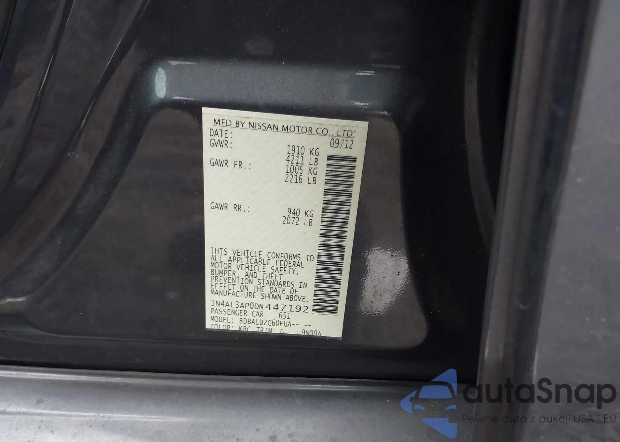 • VIN 1N4AL3AP0DN447192