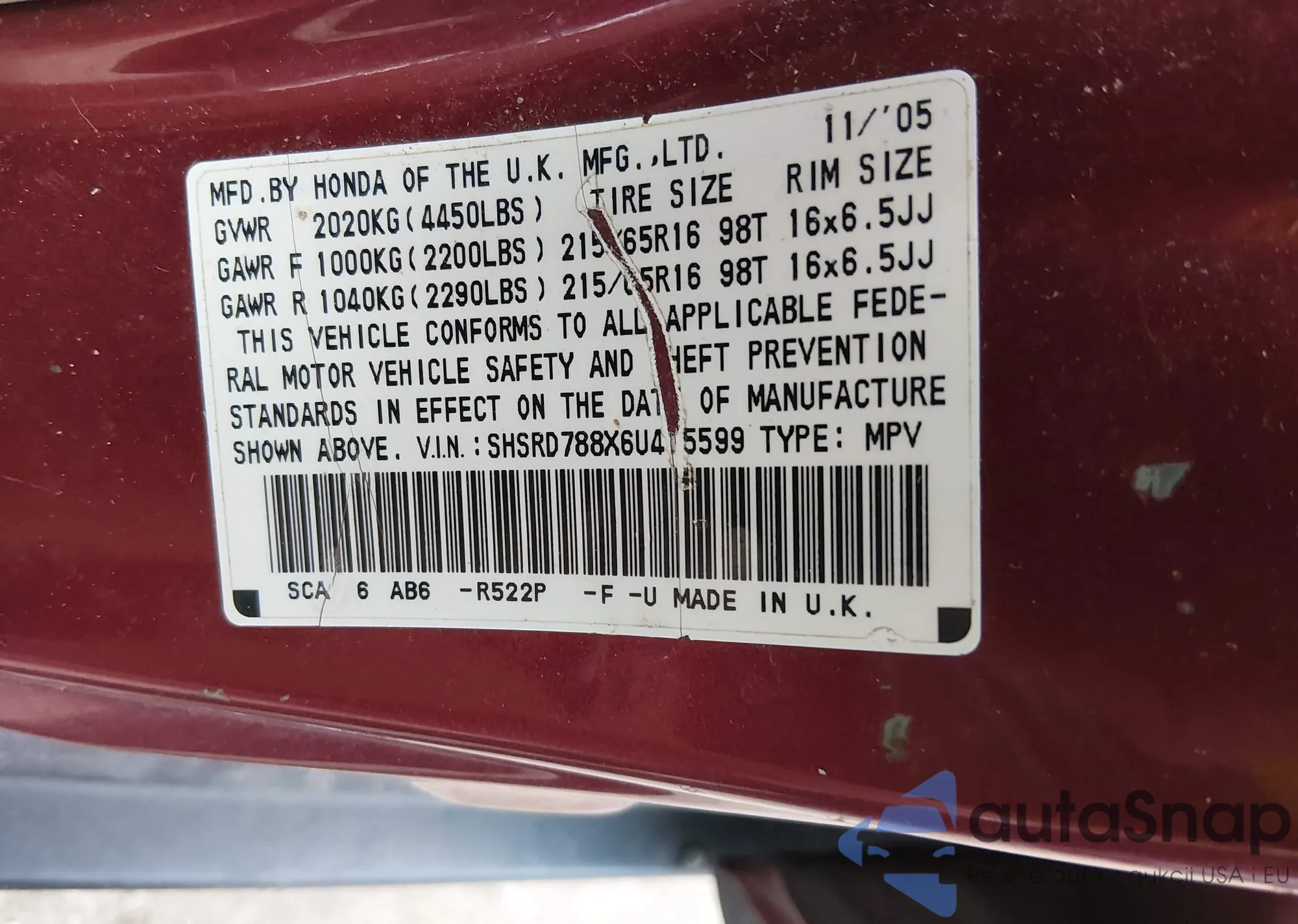 • VIN 1HGCV2F37NA004447