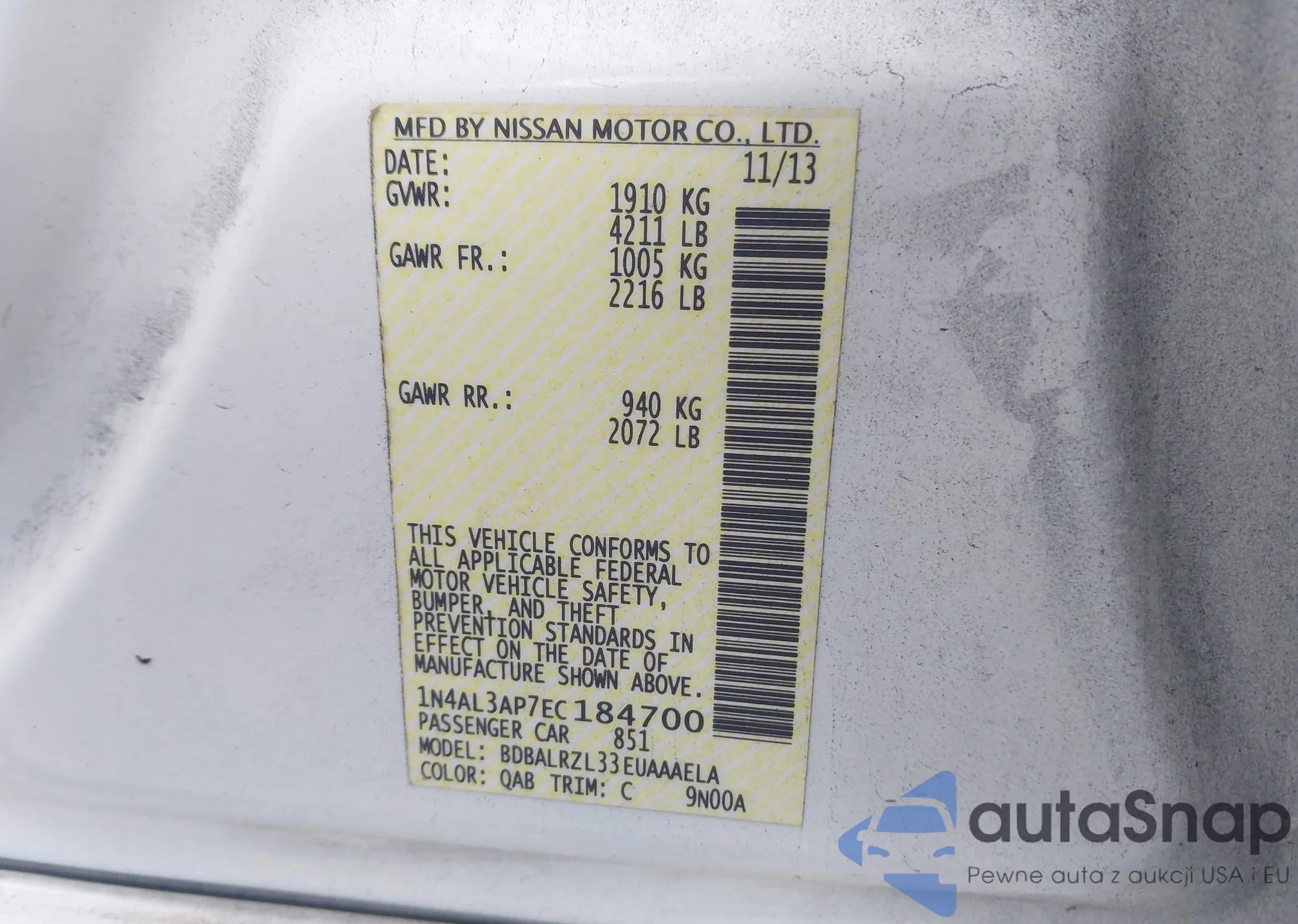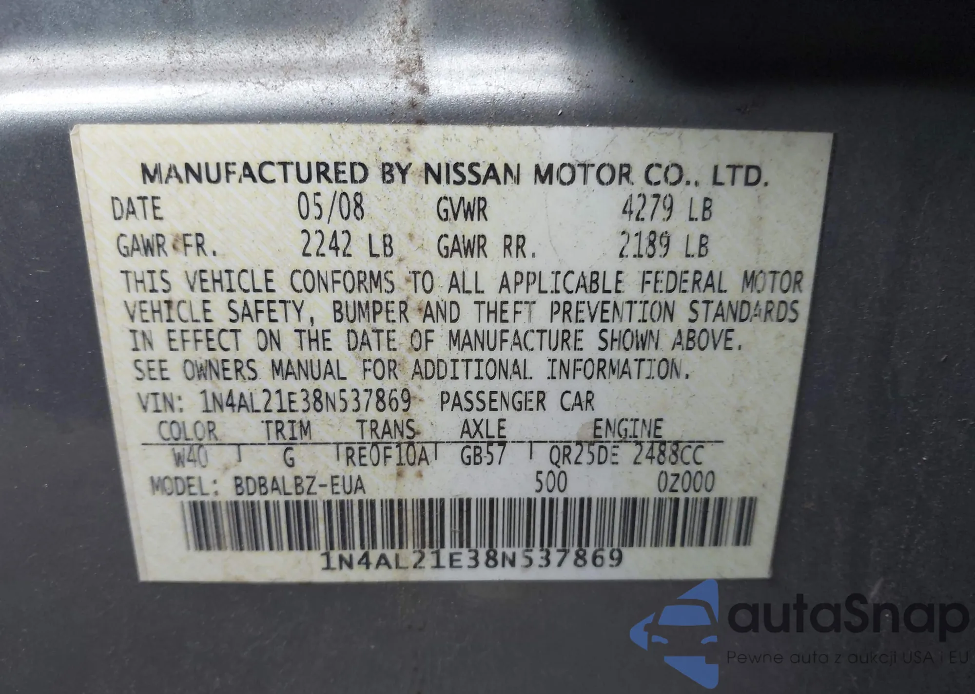 LOT: 44124043 VIN: 1N4AL21E38N537869