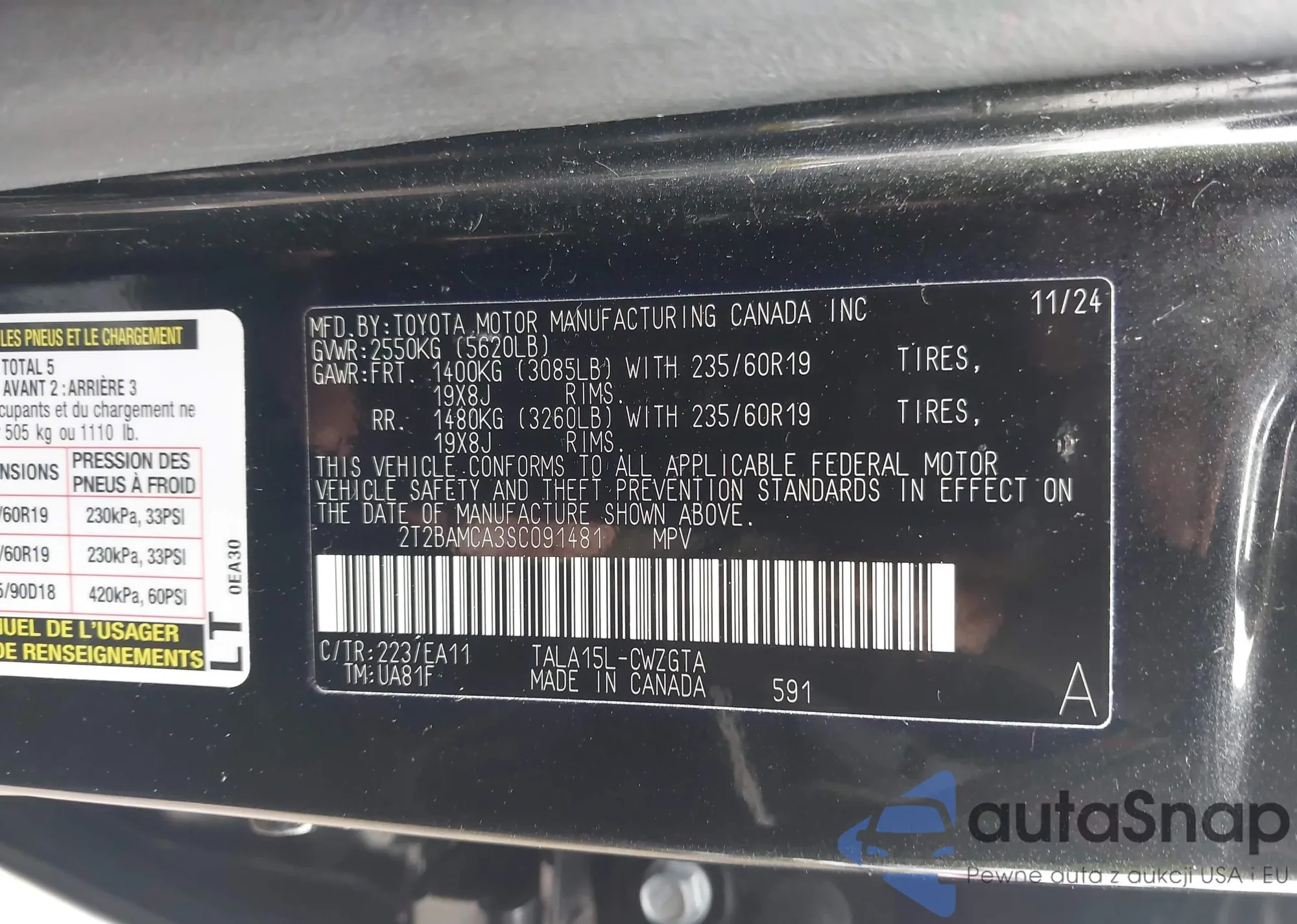 • VIN 2T2BAMCA3SC091481