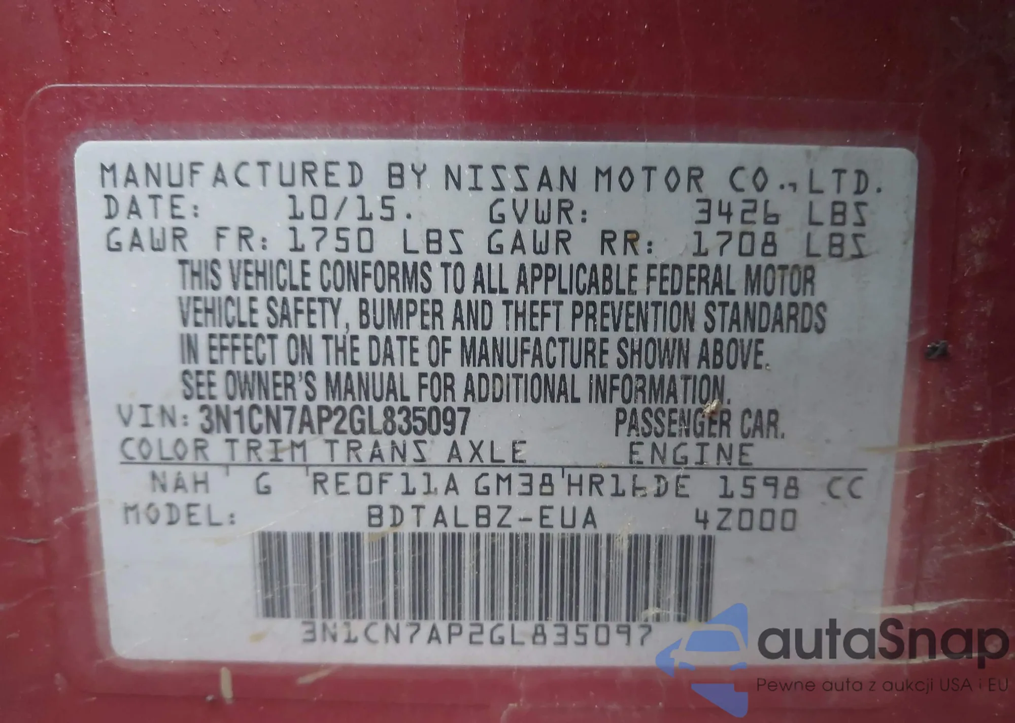 LOT: 44136339 VIN: 1N4AA5AP0AC871738