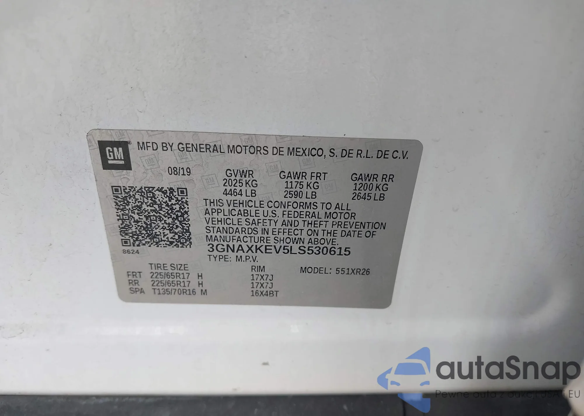 LOT: 44035109 VIN: 1GNERGKW8KJ155535