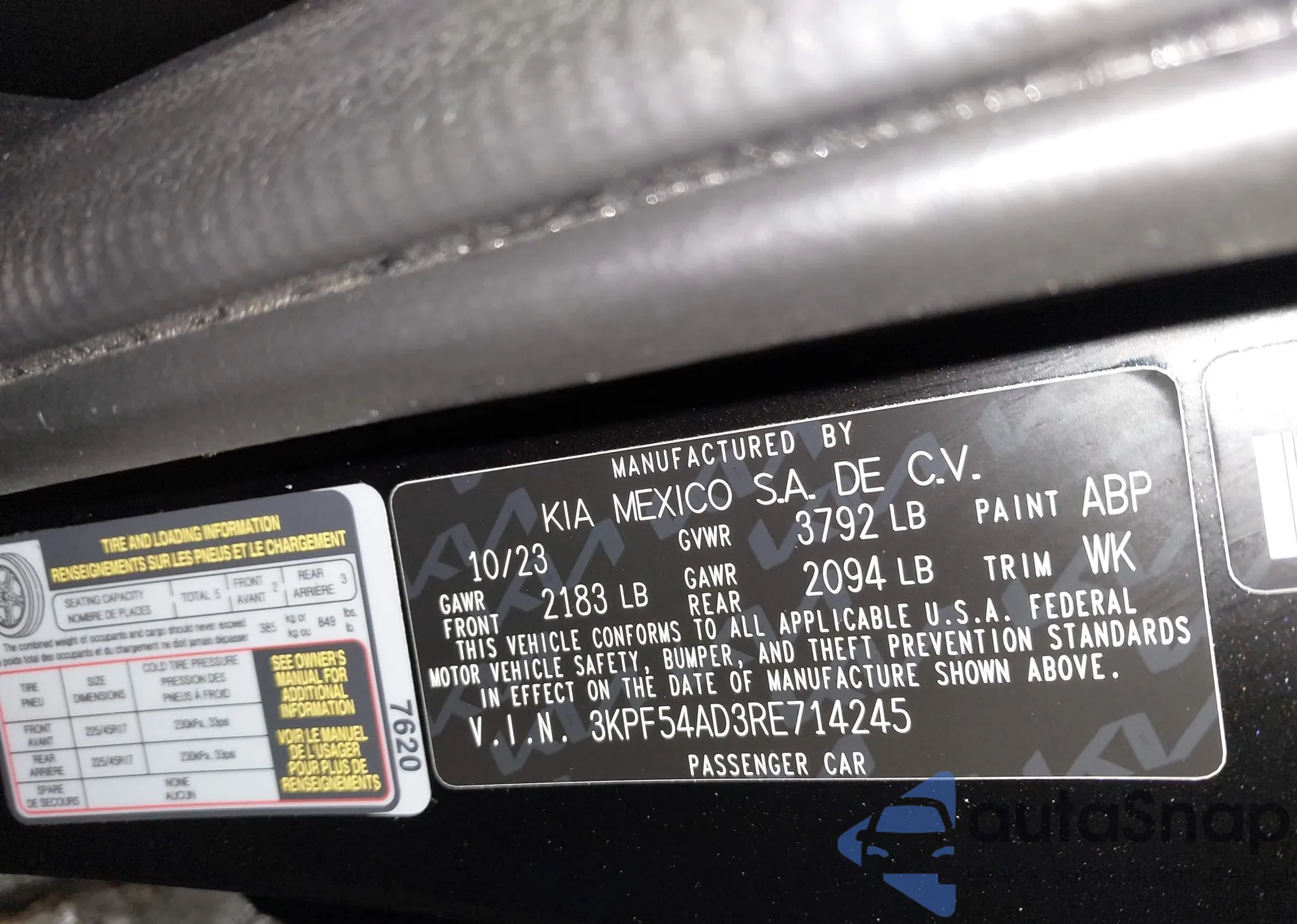• VIN 3KPF54AD3RE714245