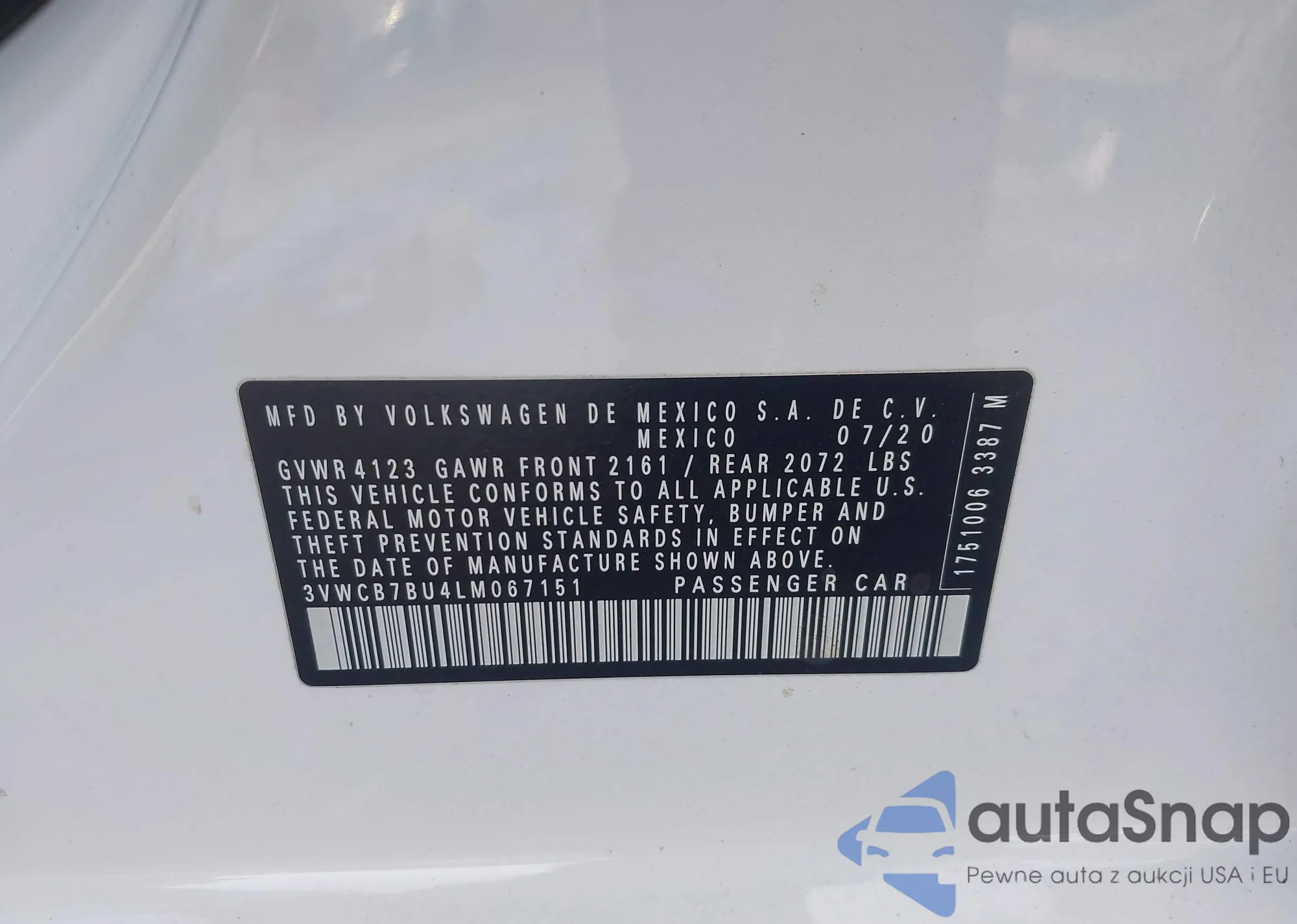 • VIN 3VWCB7BU4LM067151