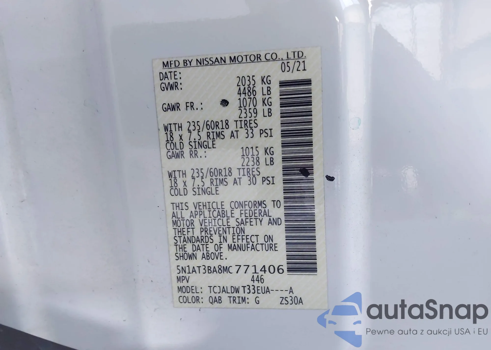 • VIN 5N1AT3BA8MC77140