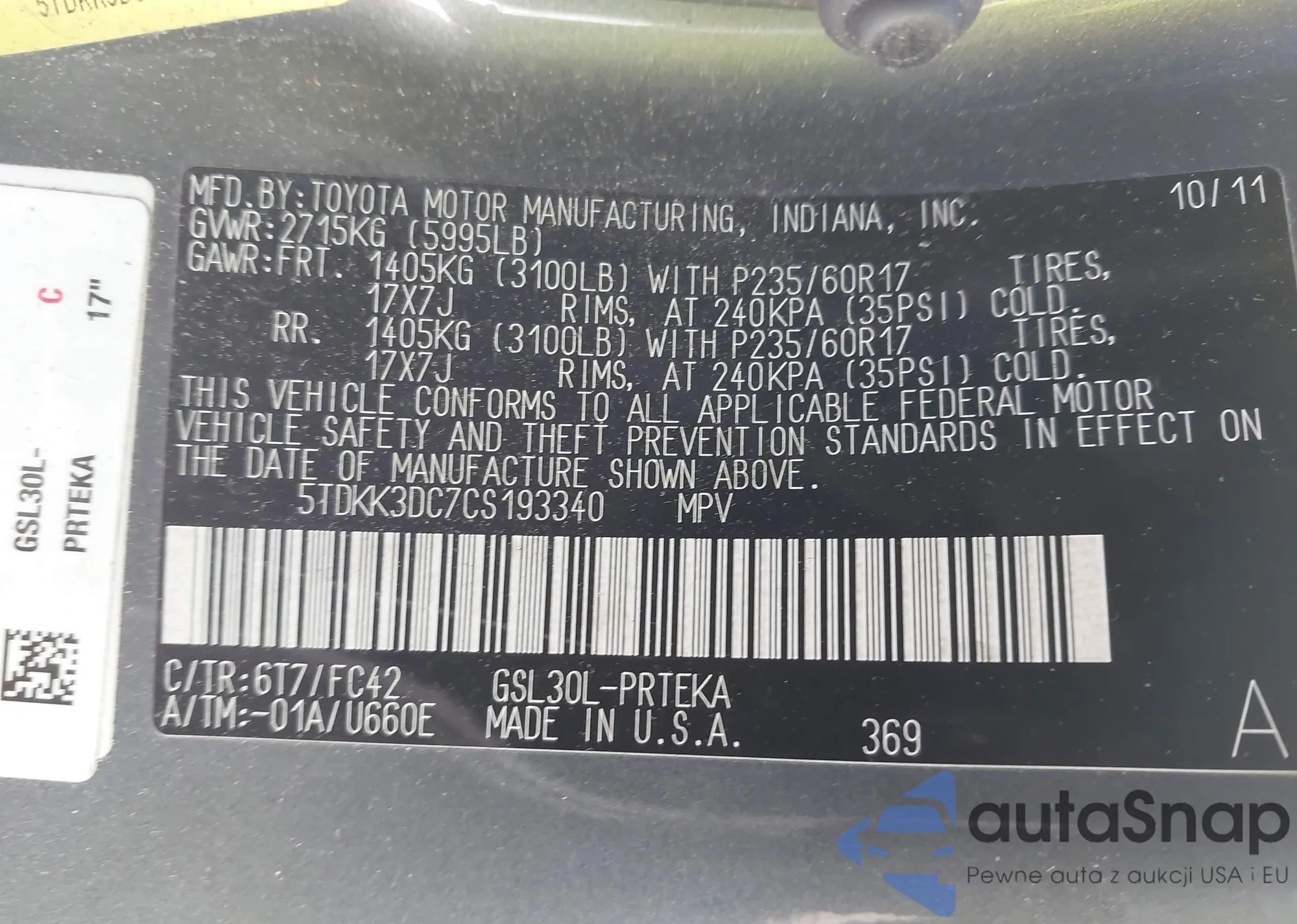 • VIN 5TDKK3DC7CS193340