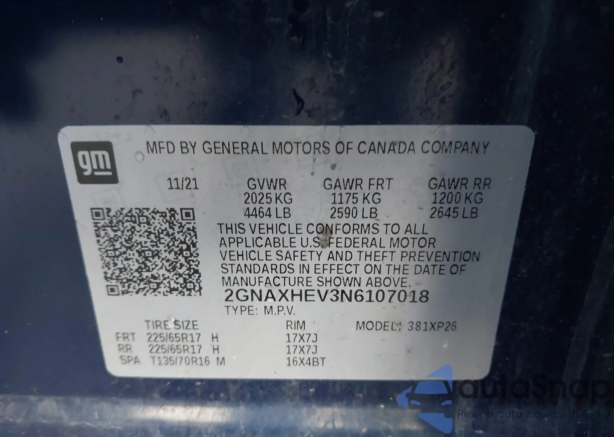 LOT: 43326881 VIN: 2G61L5S38H9165041