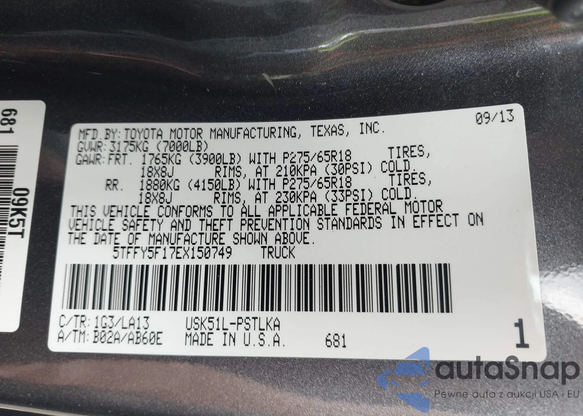 • VIN 5TFFY5F17EX150749