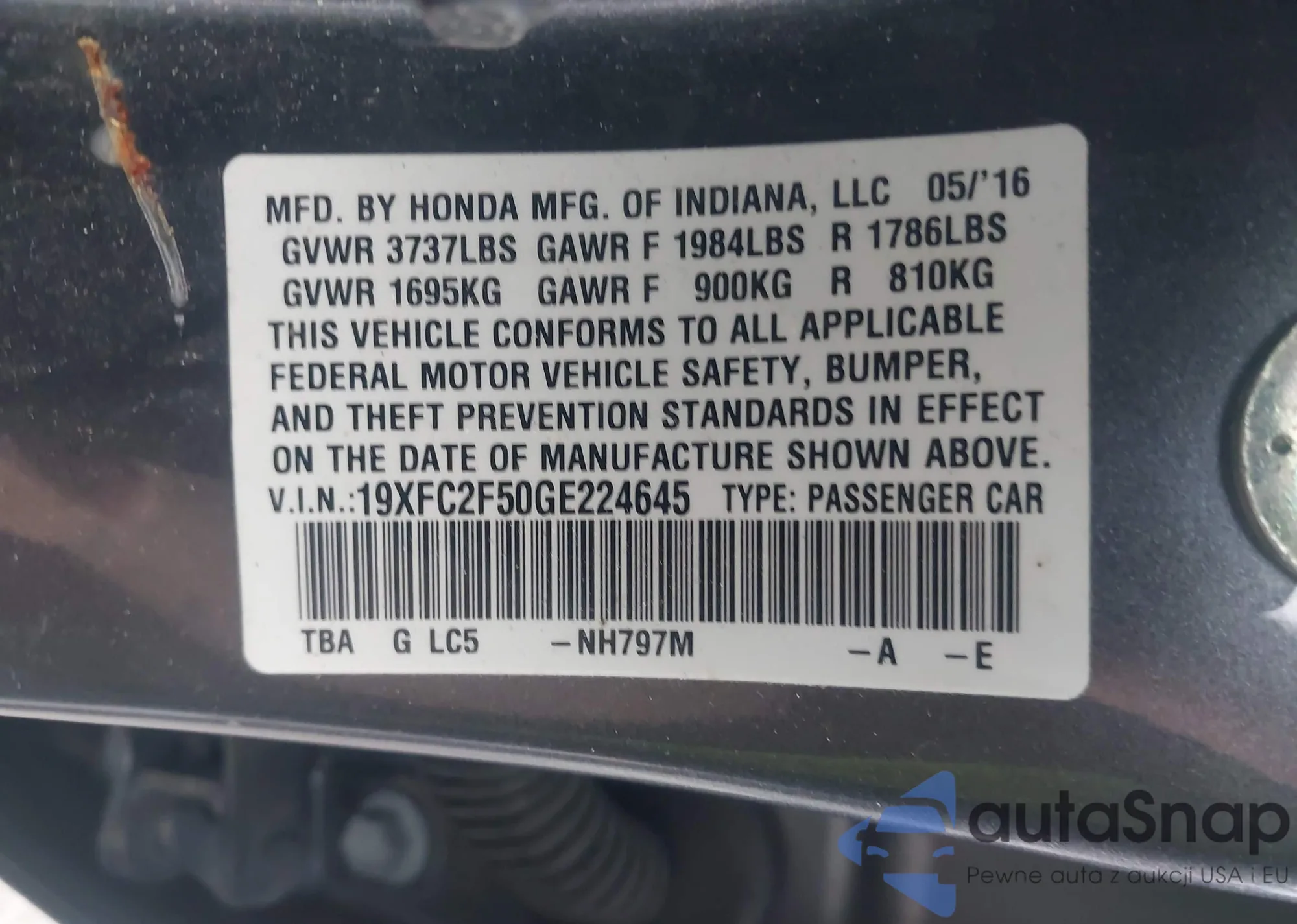 • VIN 19XFC2F50GE224645