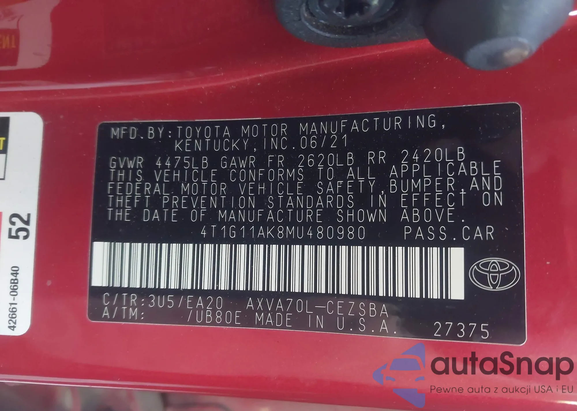 LOT: 44149401 VIN: KNDPCCA63B7113476