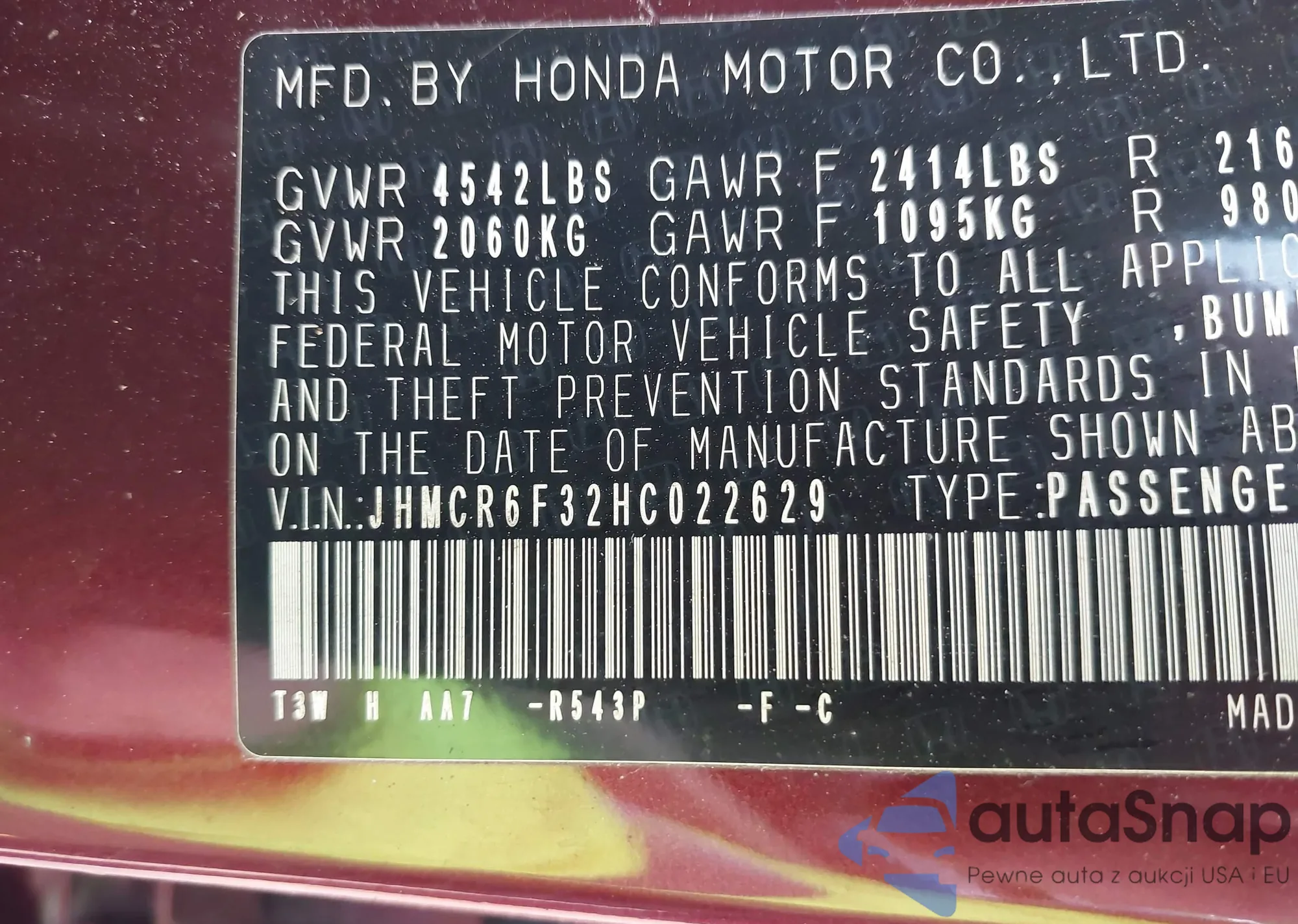 • VIN 5FNRL5H6XFB061628