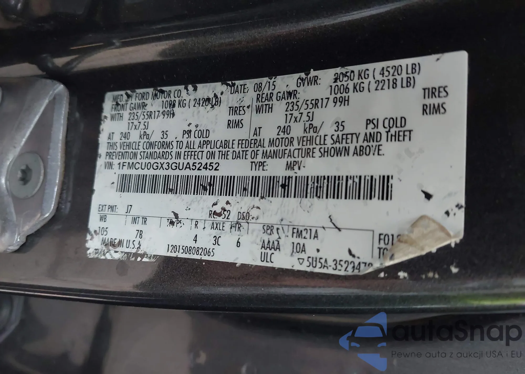LOT: 44045226 VIN: 1FMCU0GX3GUA52452