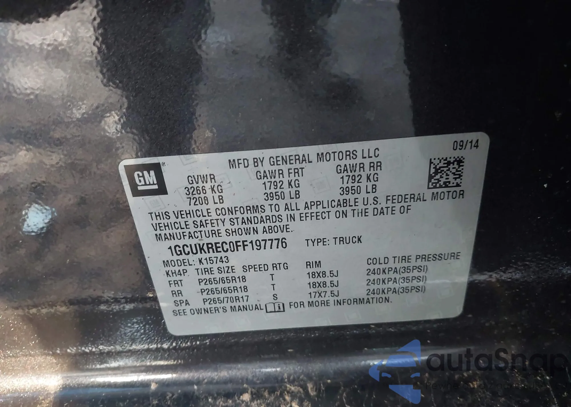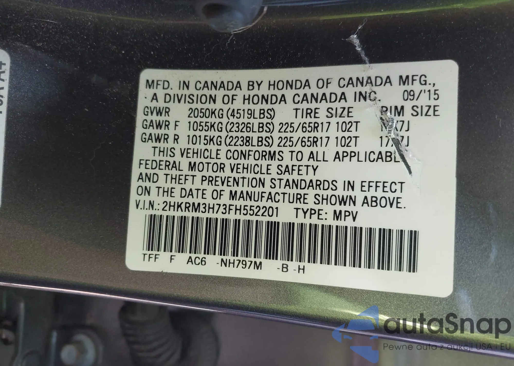 • VIN 2HKRM3H73FH552201