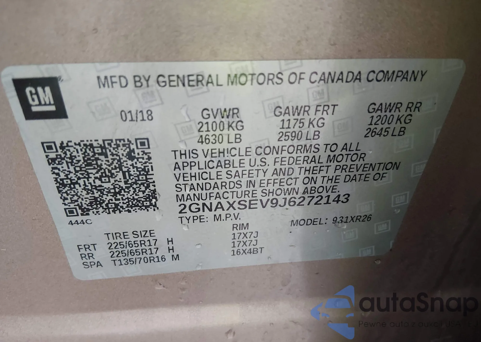 • VIN 1G1AF1F59A7147754