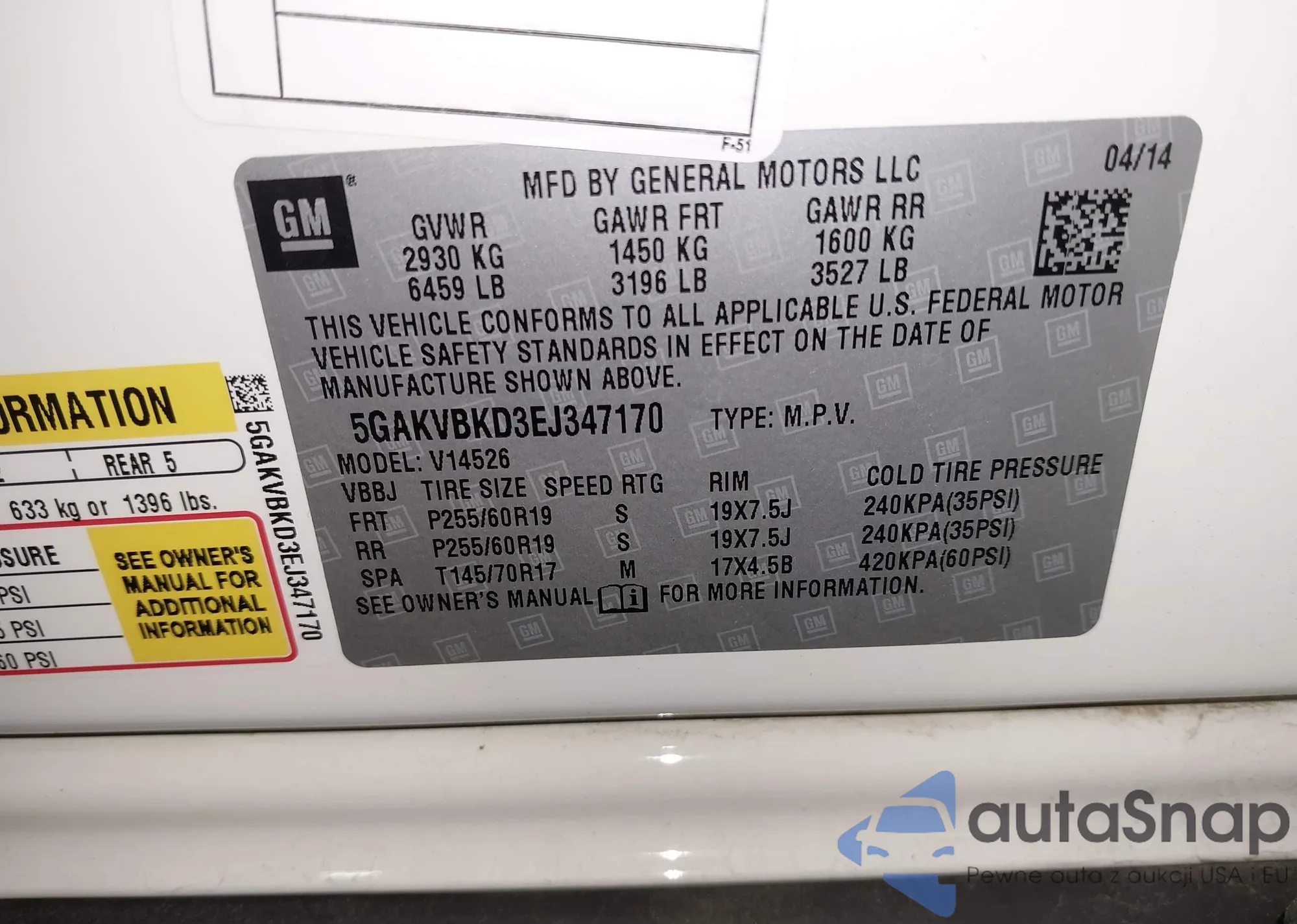 • VIN 5GAKVBKD3EJ347170