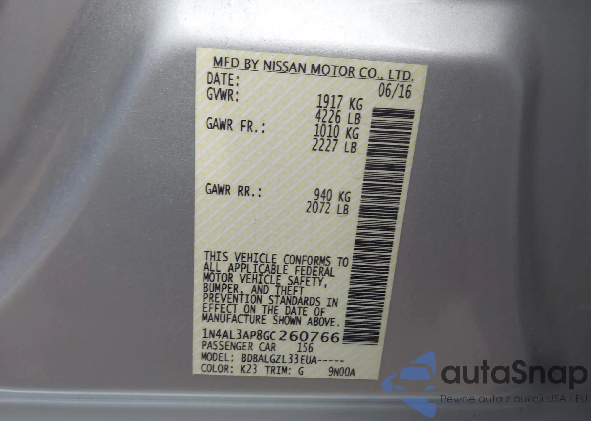 LOT: 44276695 VIN: 1N4AL3AP1FC443943