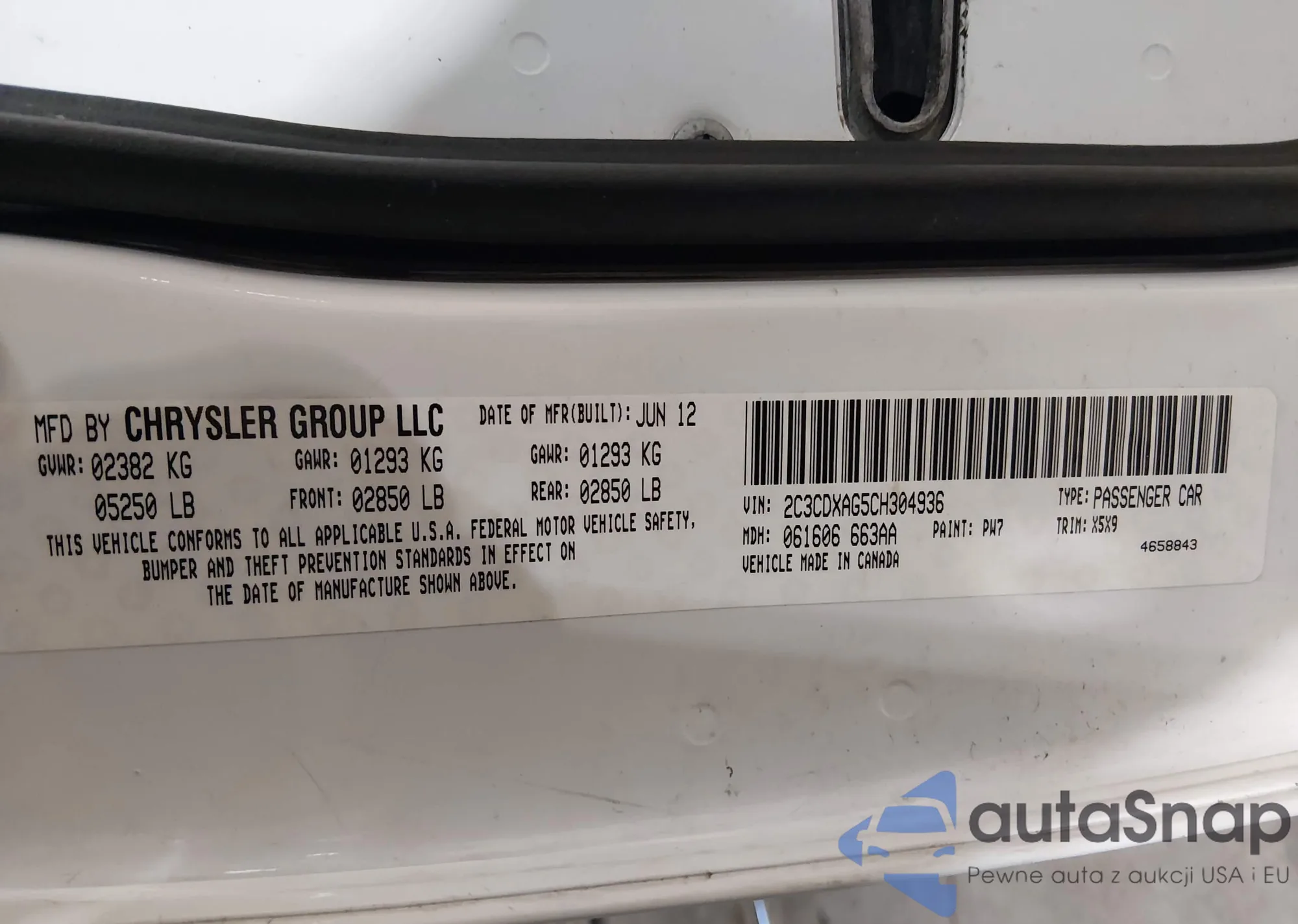 • VIN 2C3CDDXAG5CH30496