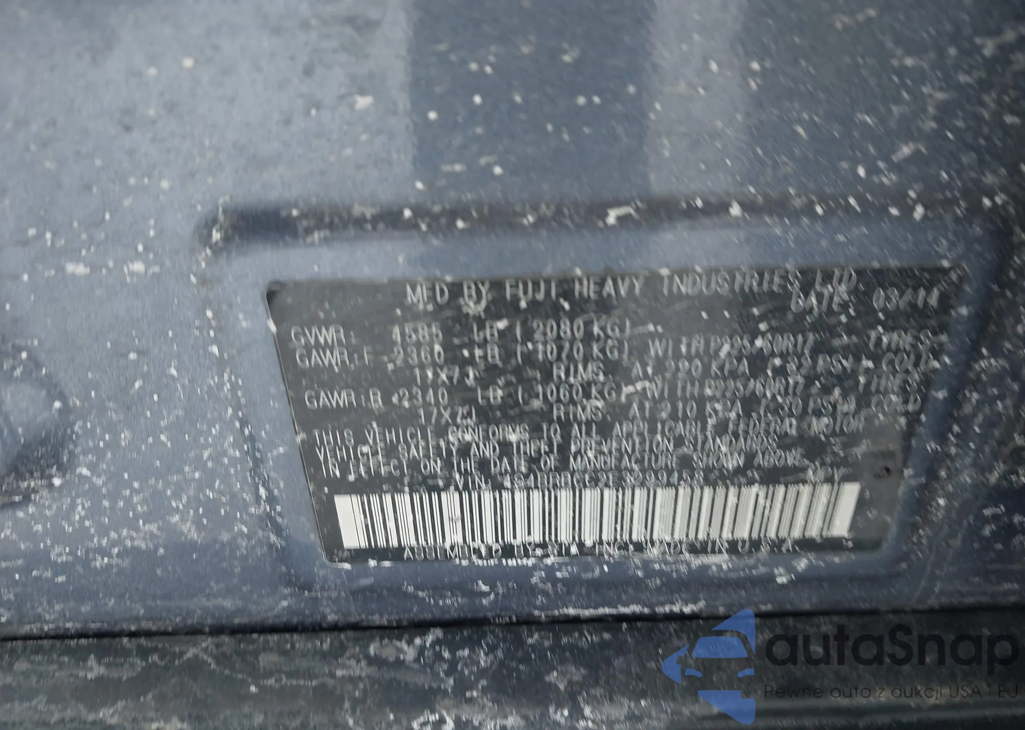 LOT: 43939011 VIN: 4S4BRBCC2E3299458