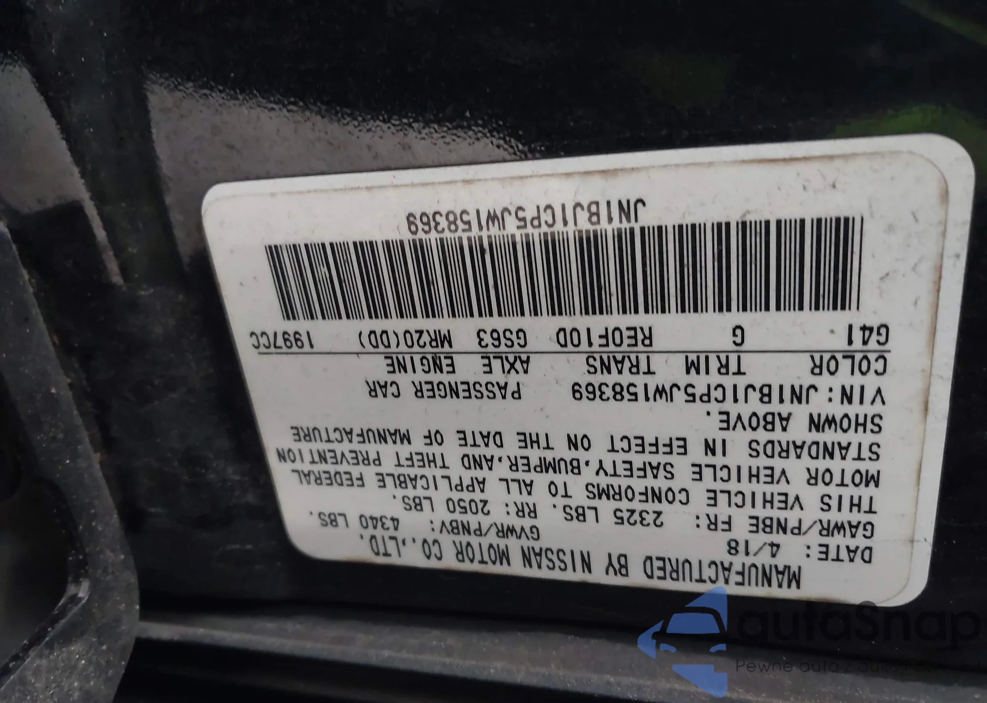 LOT: 44147482 VIN: JN1BJ1CP5JW158369
