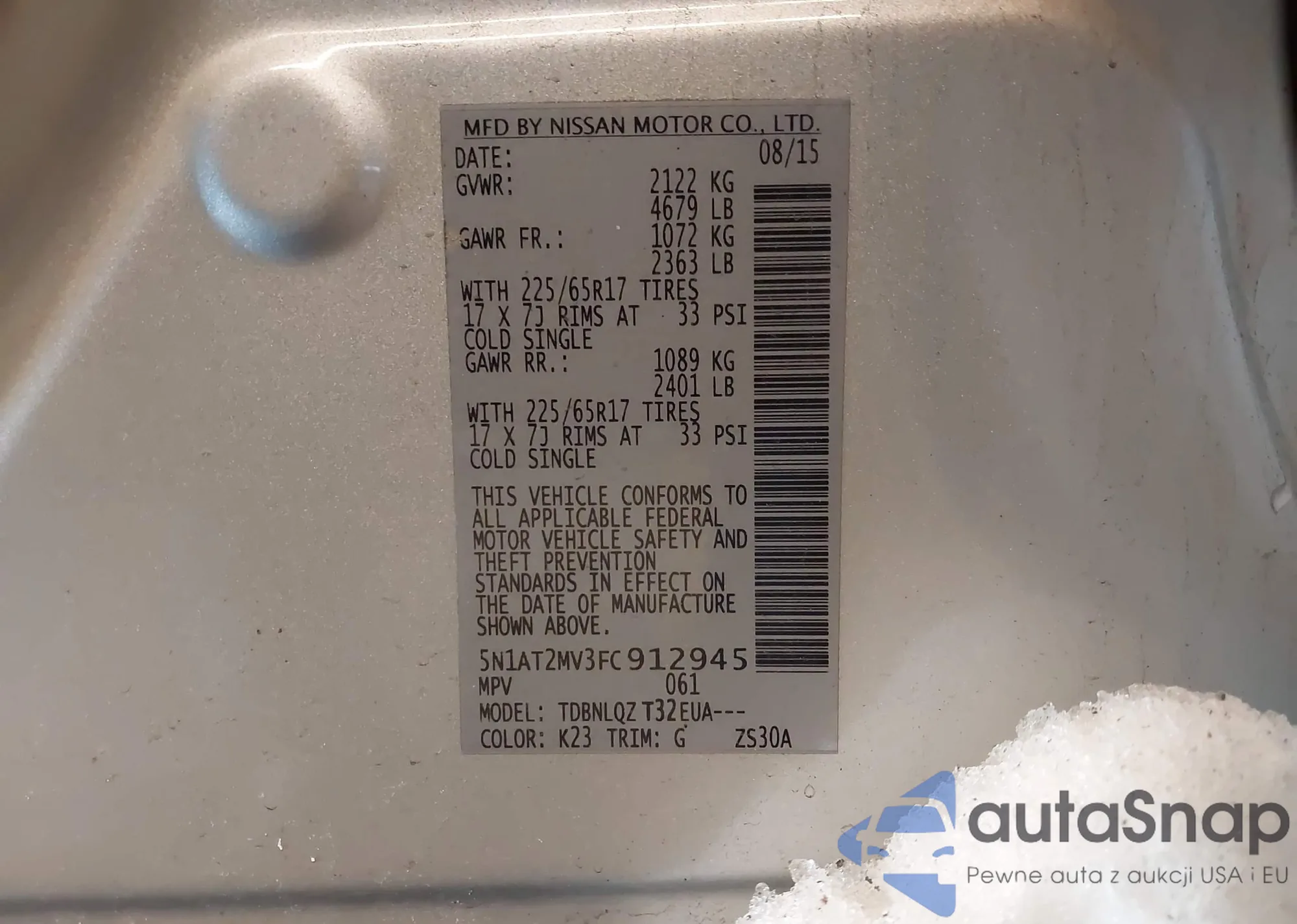 LOT: 44268739 VIN: 5N1AT2MV3FC912945