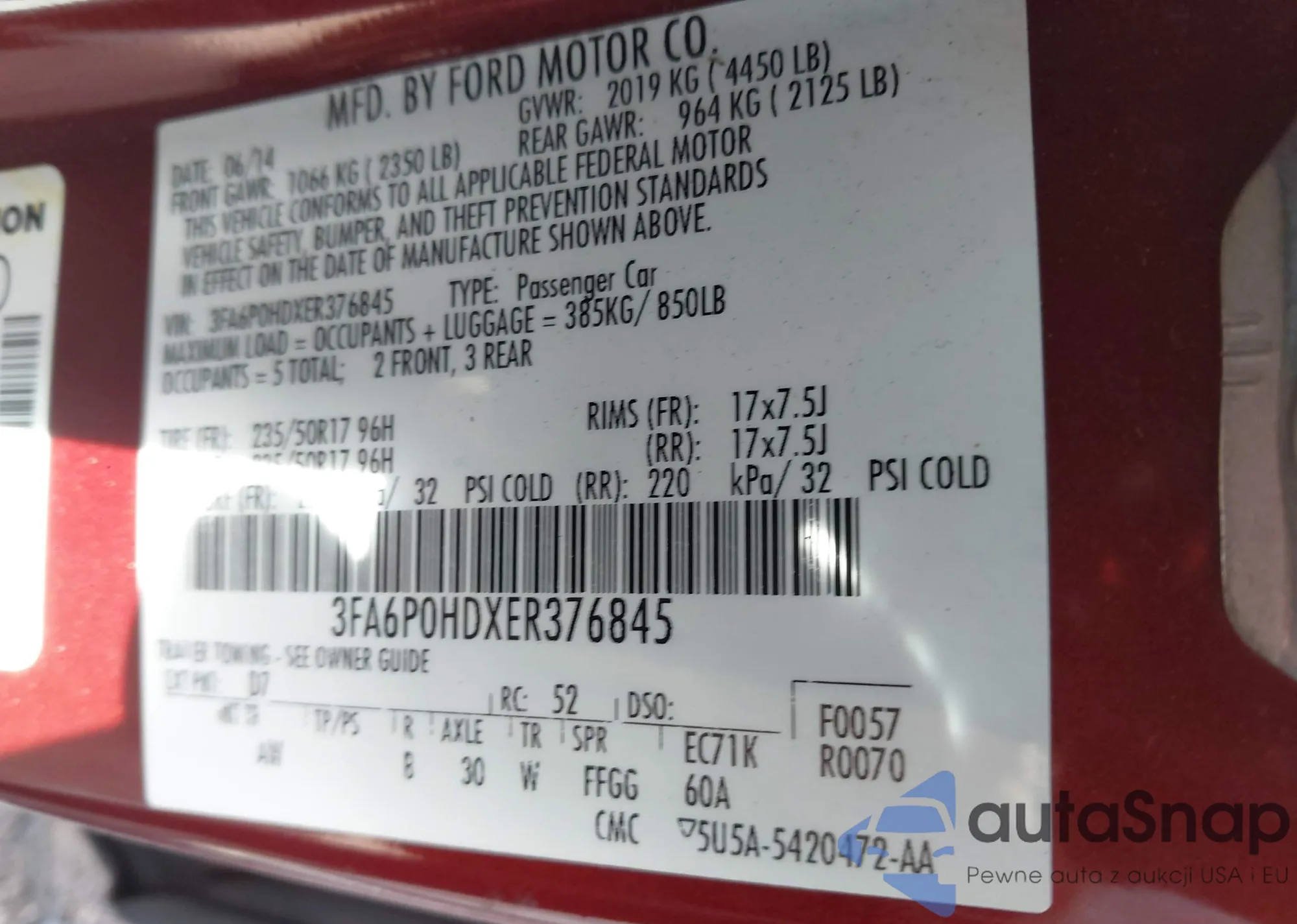 LOT: 43802120 VIN: WA1EECF30S1100214