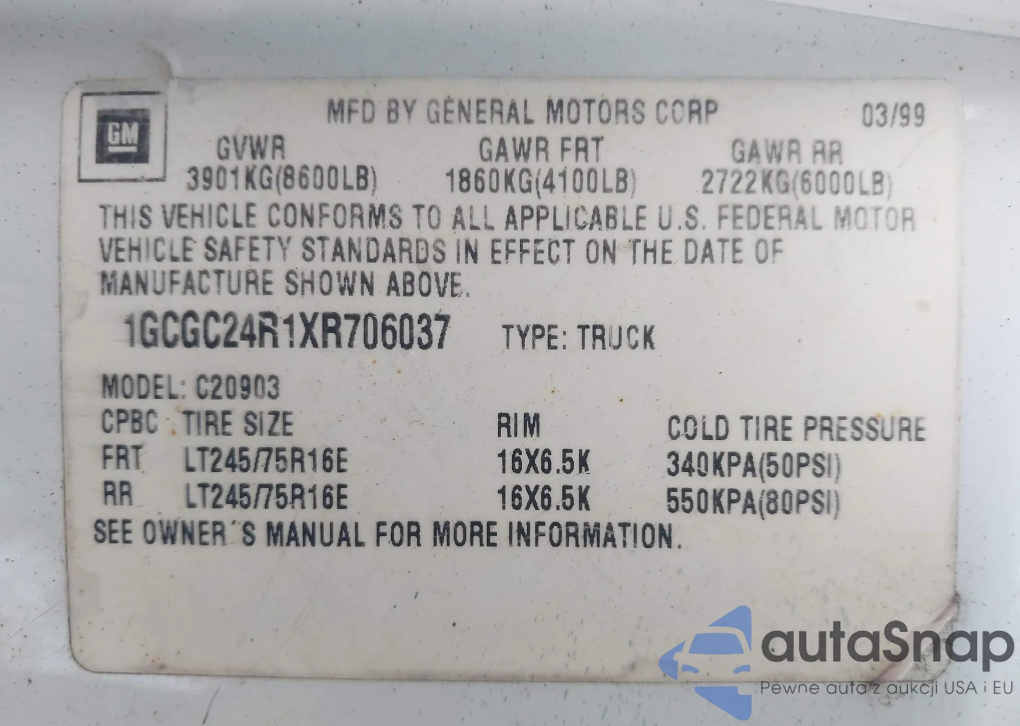• VIN 1GCGC24R1XR706037