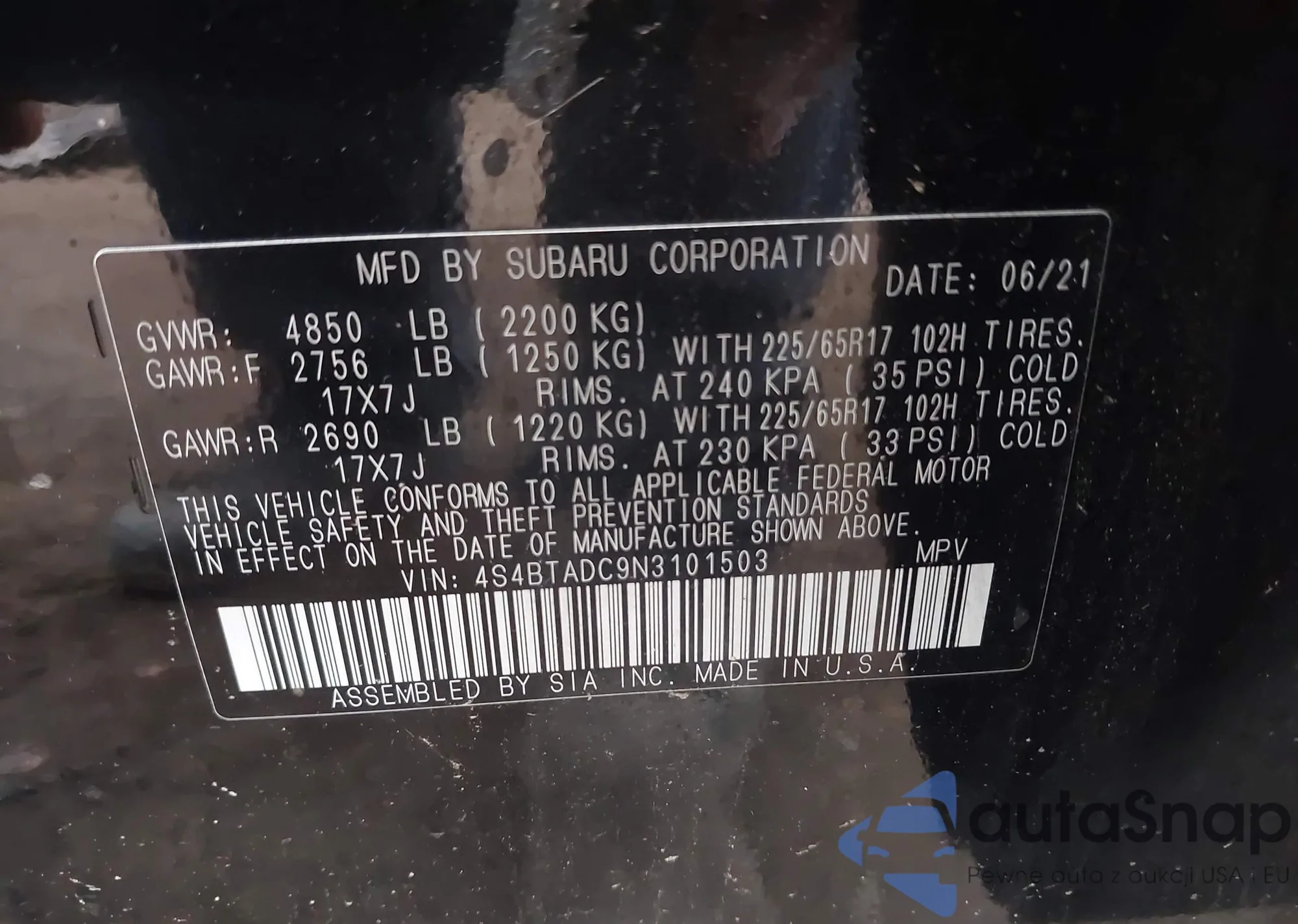 • VIN 4S4BTADC9N3101503