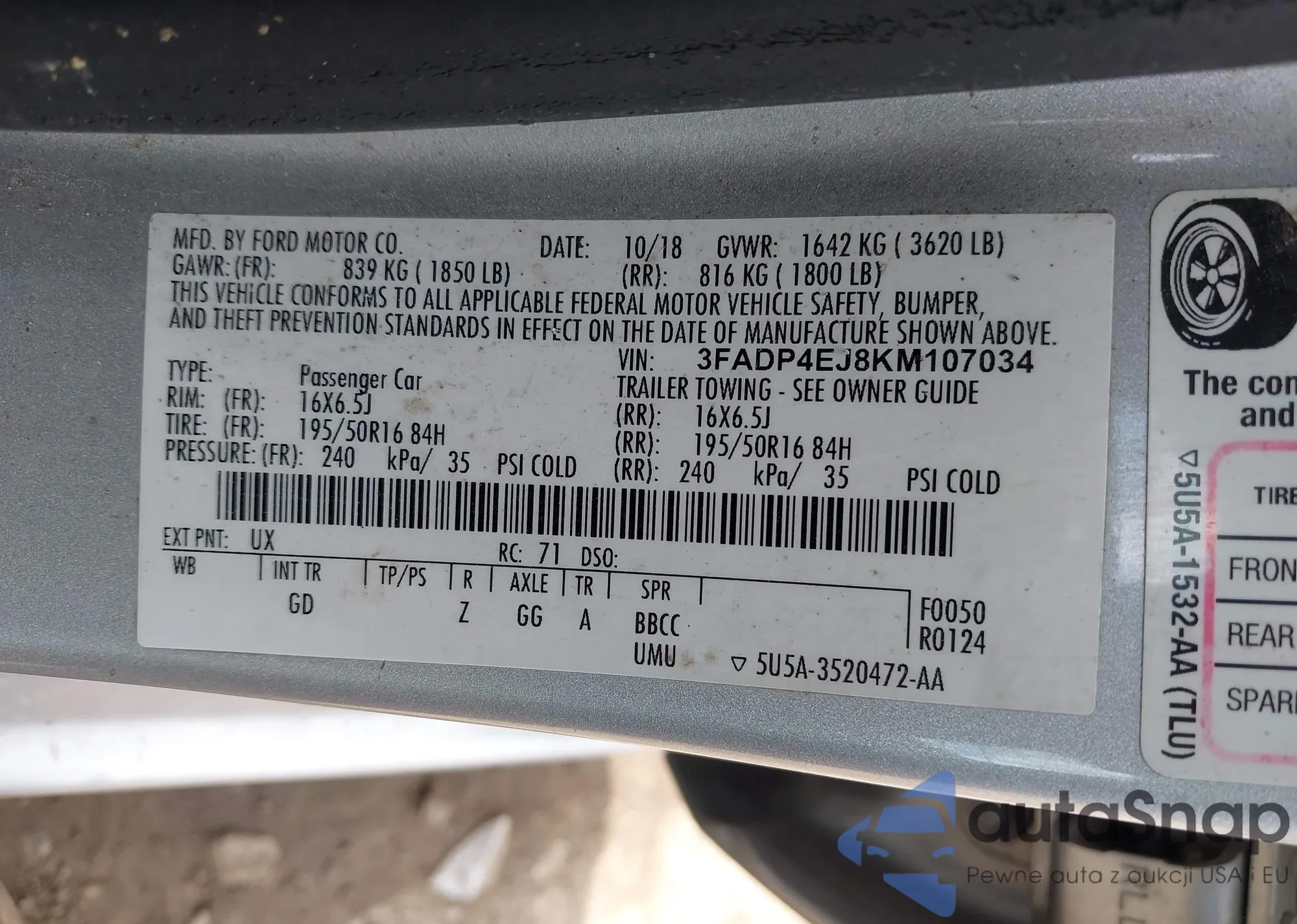 LOT: 44034381 VIN: NM0LS7F77J1371511