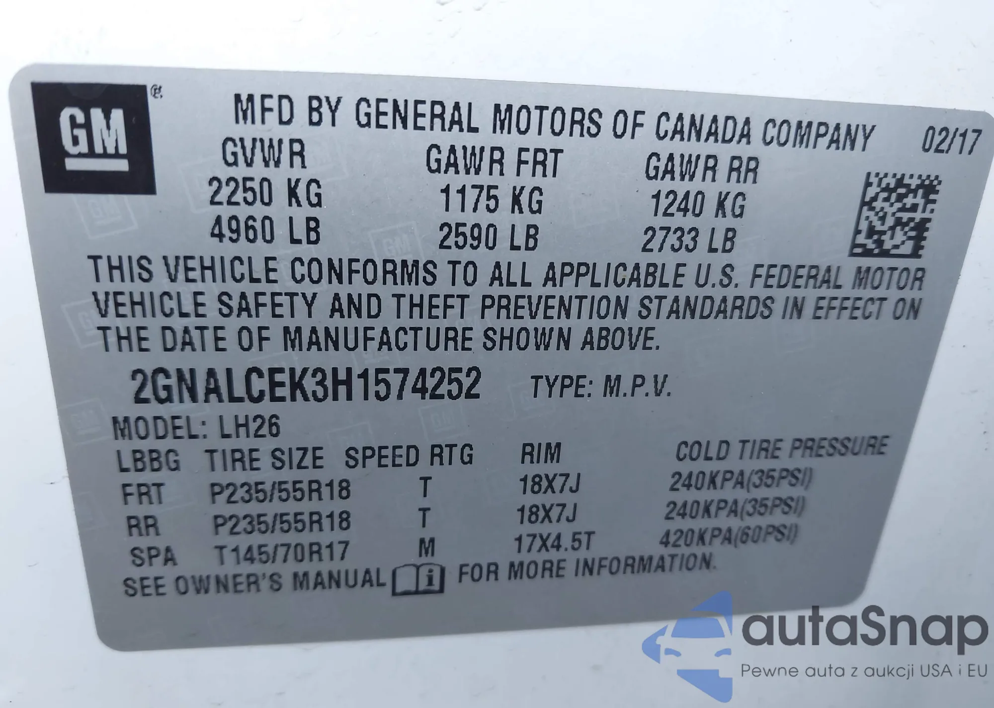 LOT: 43885712 VIN: 2G4WC582381163922
