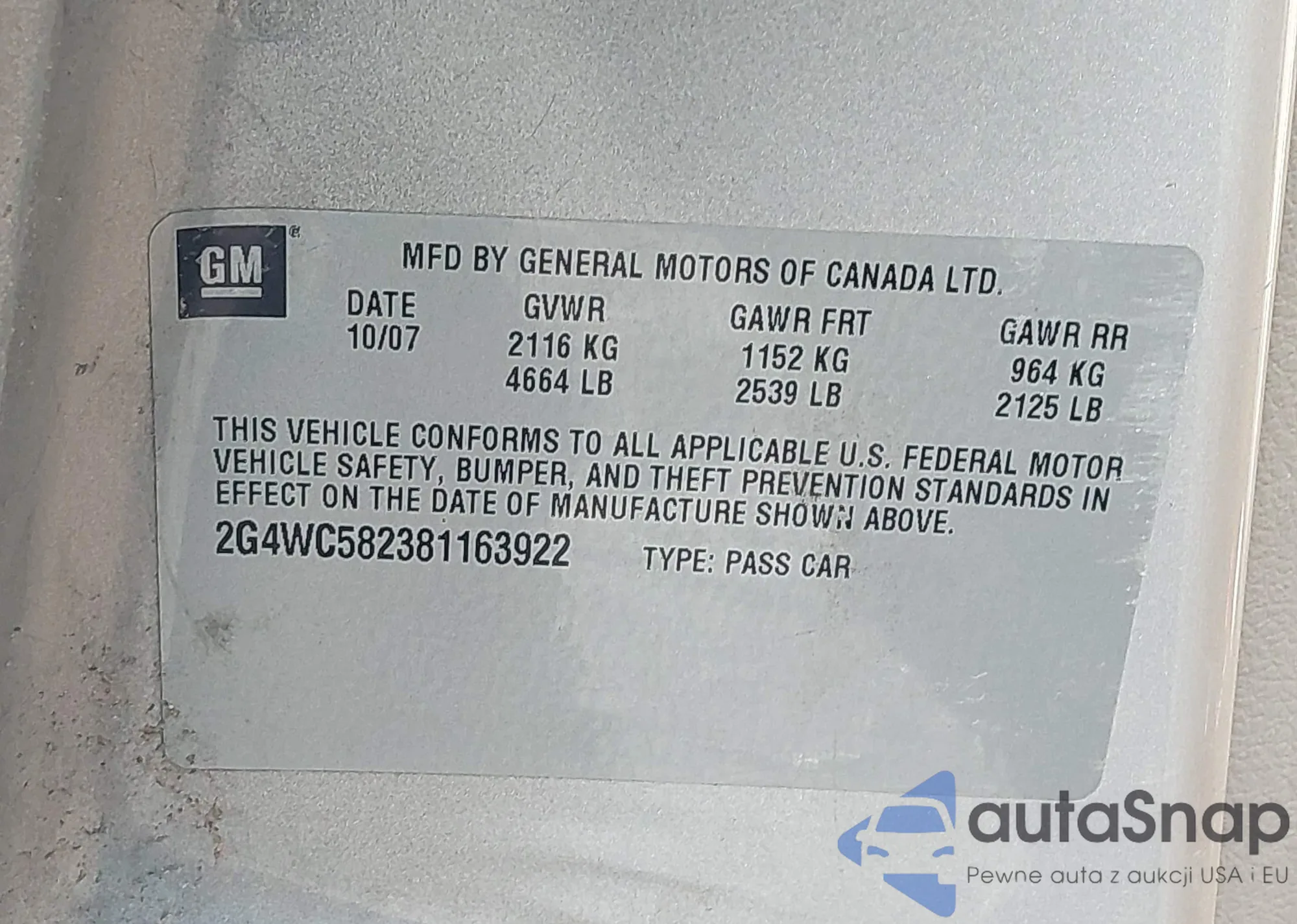 • VIN 2G4WC582381163922