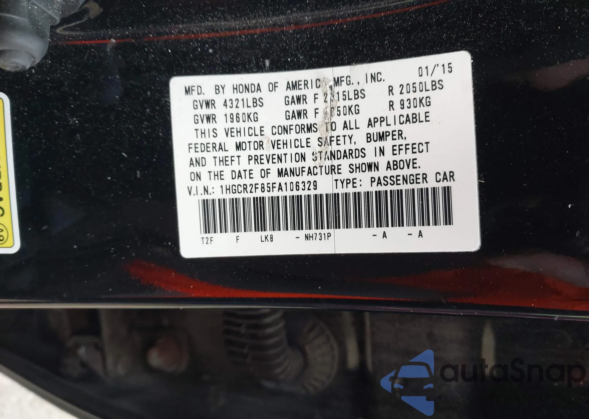 • VIN 1HGCR2F85FA106329