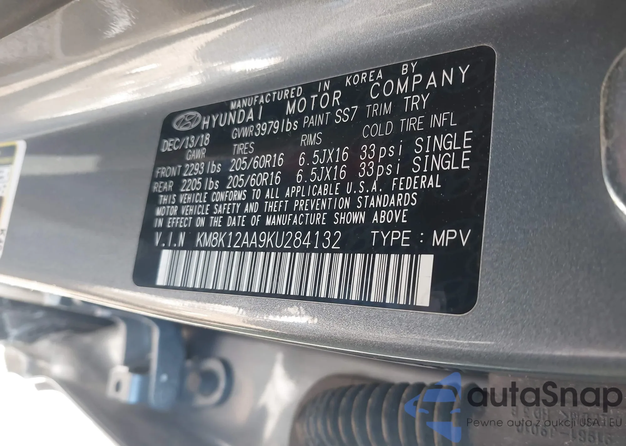 • VIN KM8K12AA9KU284132