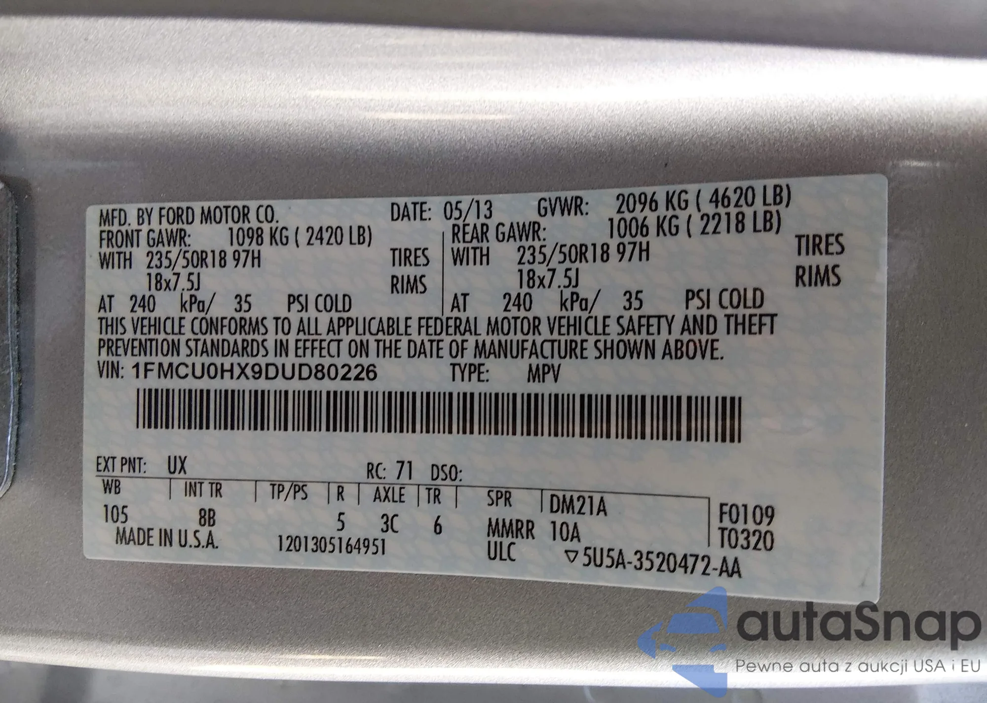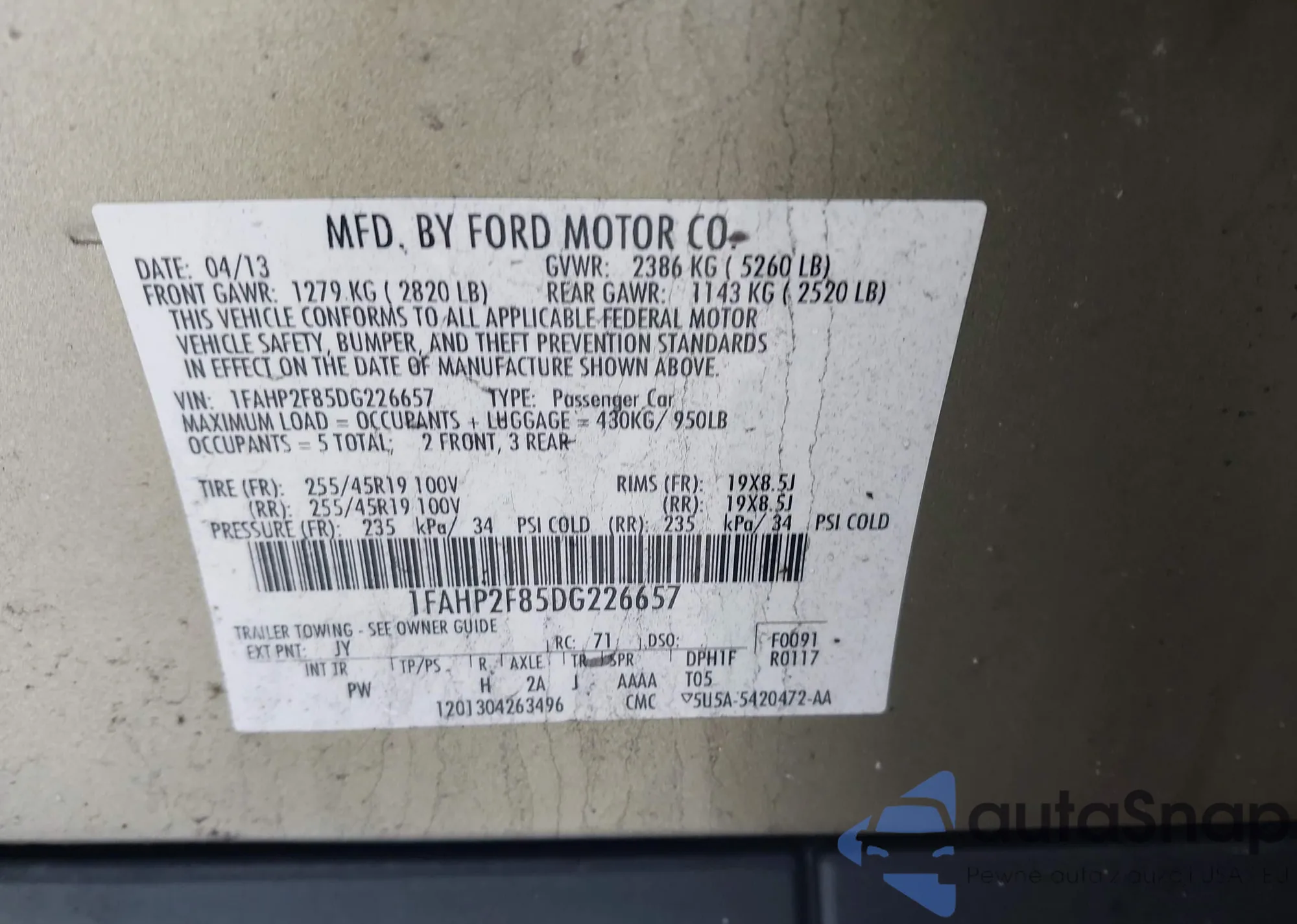 LOT: 44365794 VIN: JN8AF5MV9DT226522