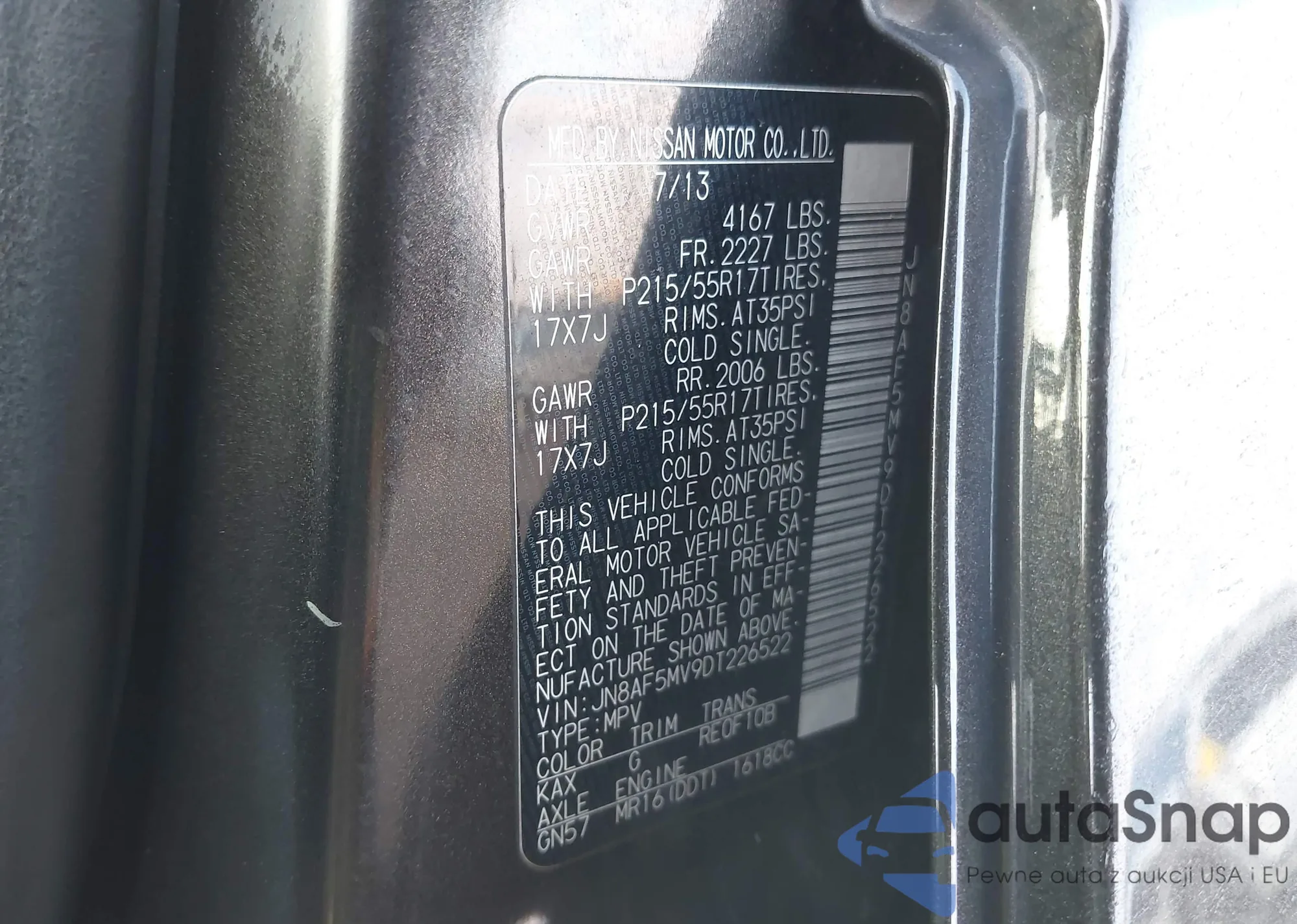 • VIN JN8AF5MV9DT226522