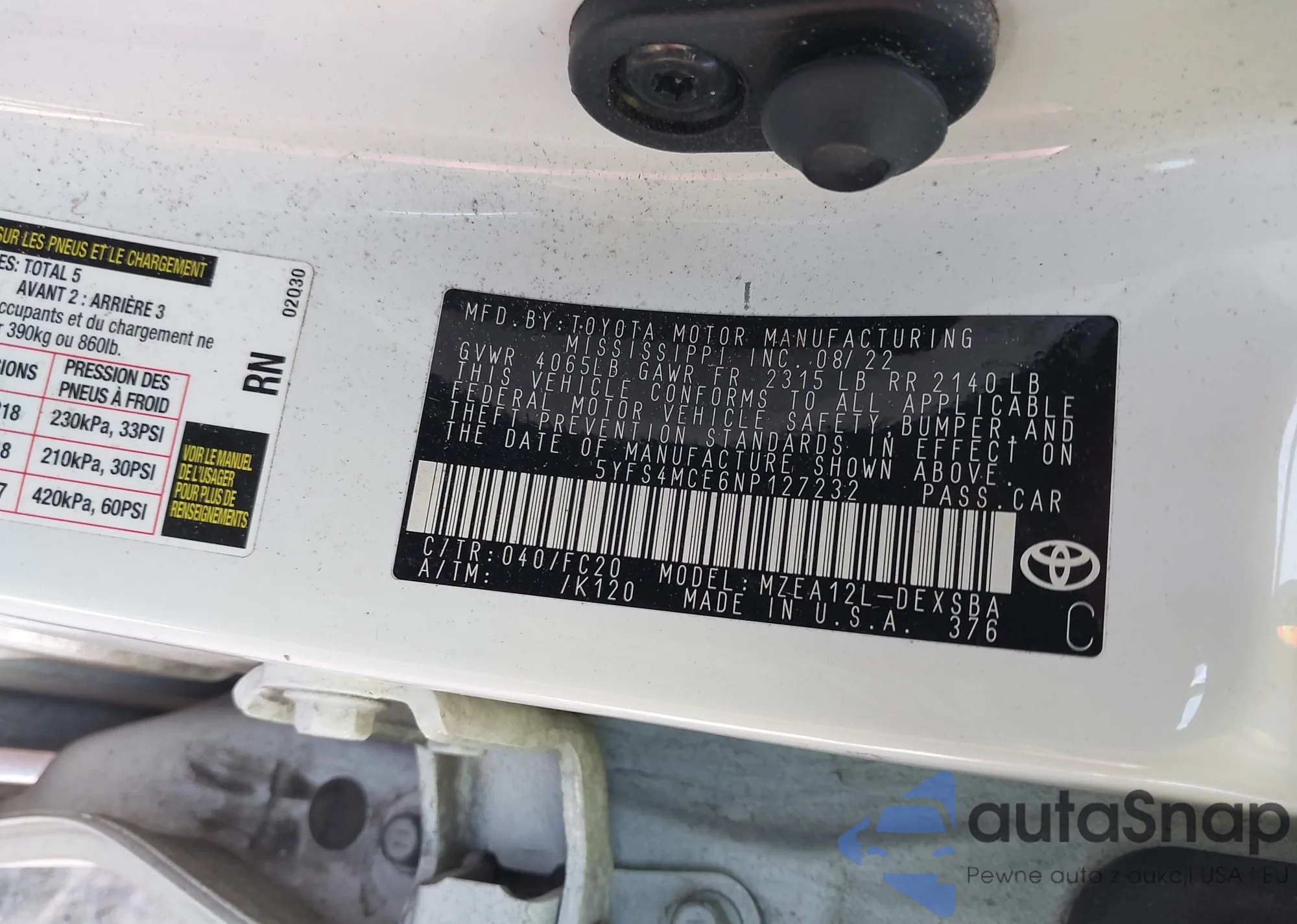 • VIN 5TDZA23C26S459400