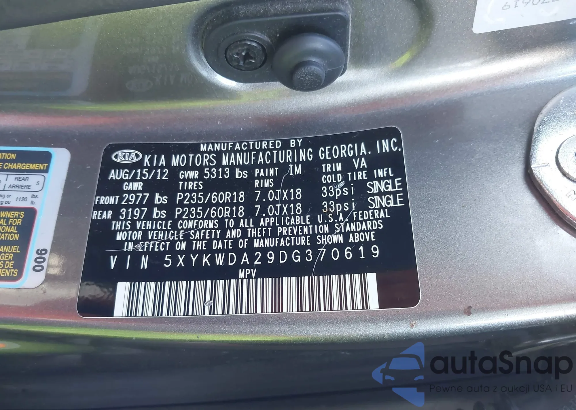 LOT: 43404272 VIN: 5XYKT3A63DG389592