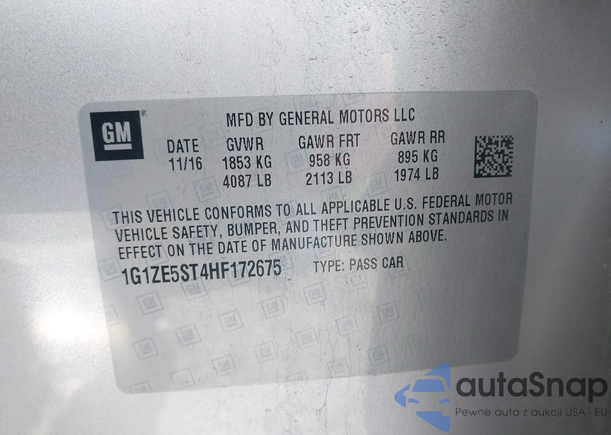 • VIN 1G1ZE5ST4HF172675
