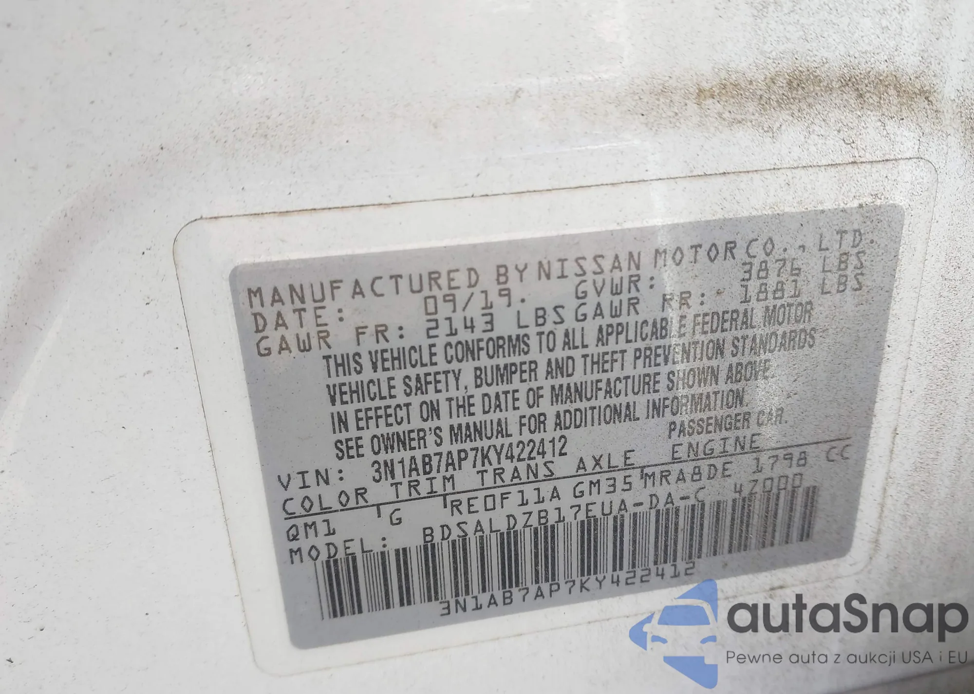 • VIN 3N1AB7AP7KY422412