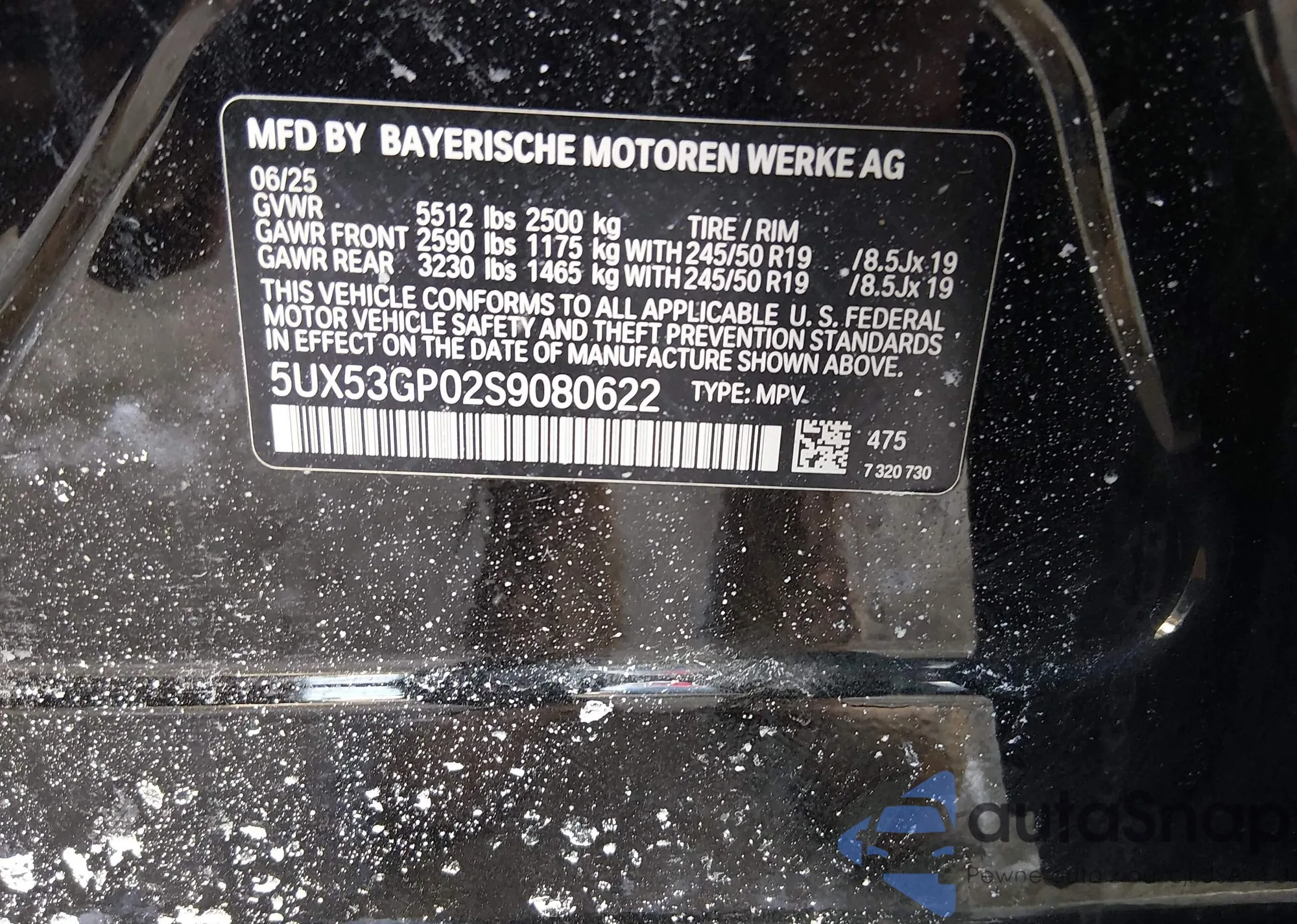 • VIN 5UX53GP02S9080622