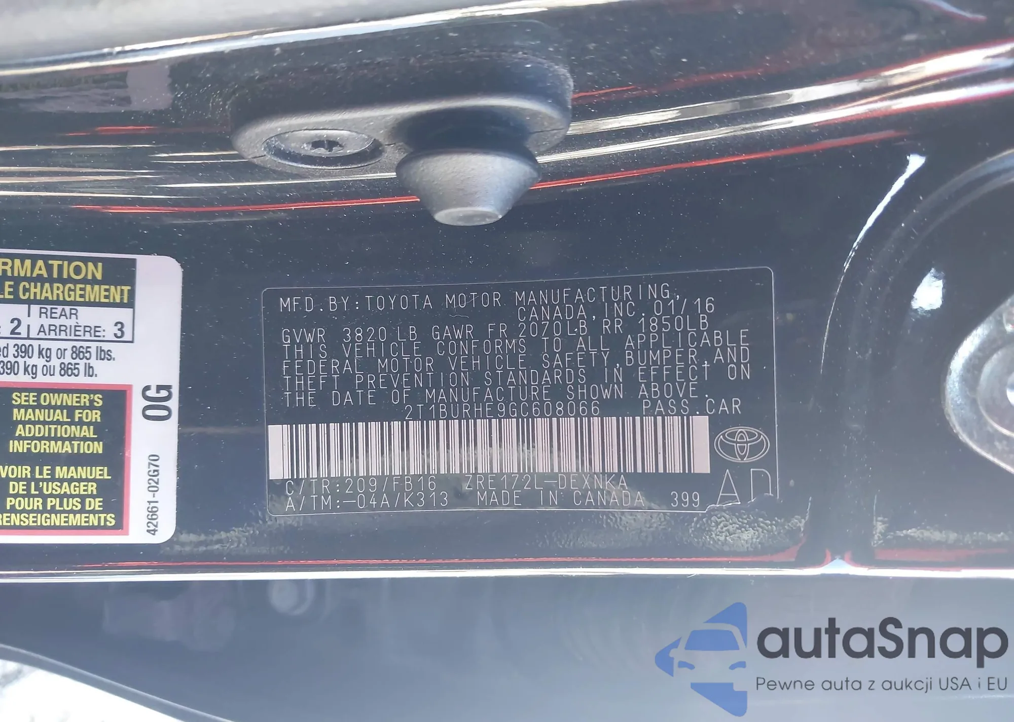 LOT: 44248863 VIN: 2T1BURHE9GC608066