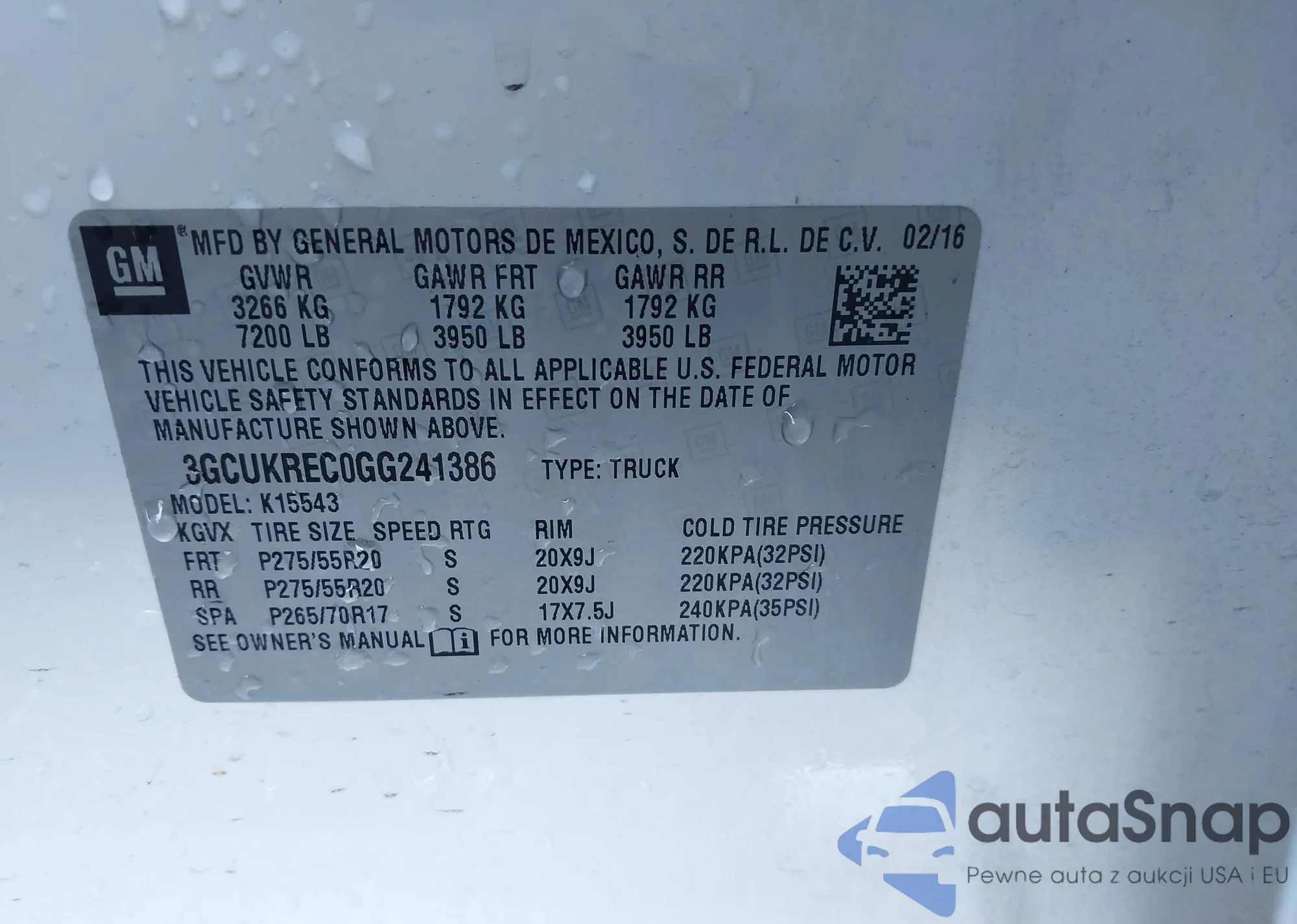 LOT: 43831712 VIN: 3GCUKREC0GG241386