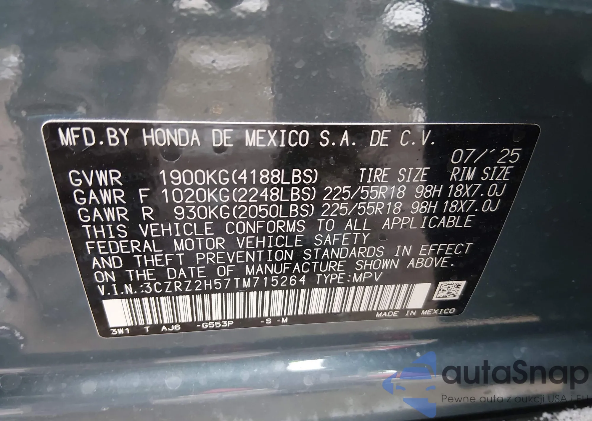• VIN 3CZRZ2H57TM715264