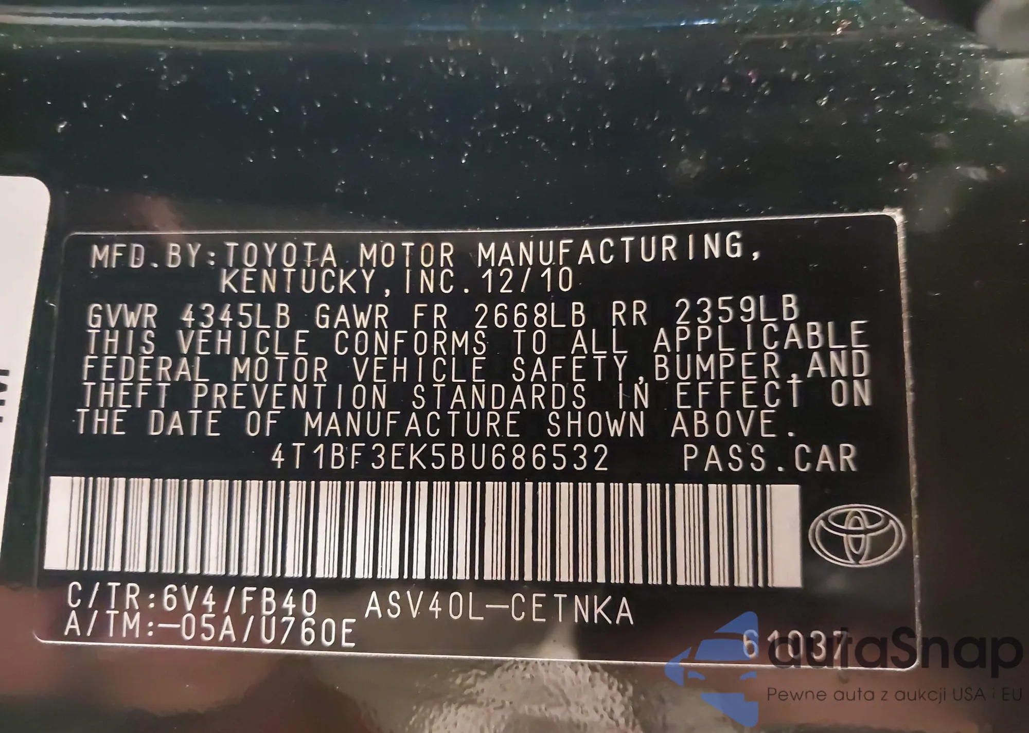 • VIN 4T1BF3EK5BU686532
