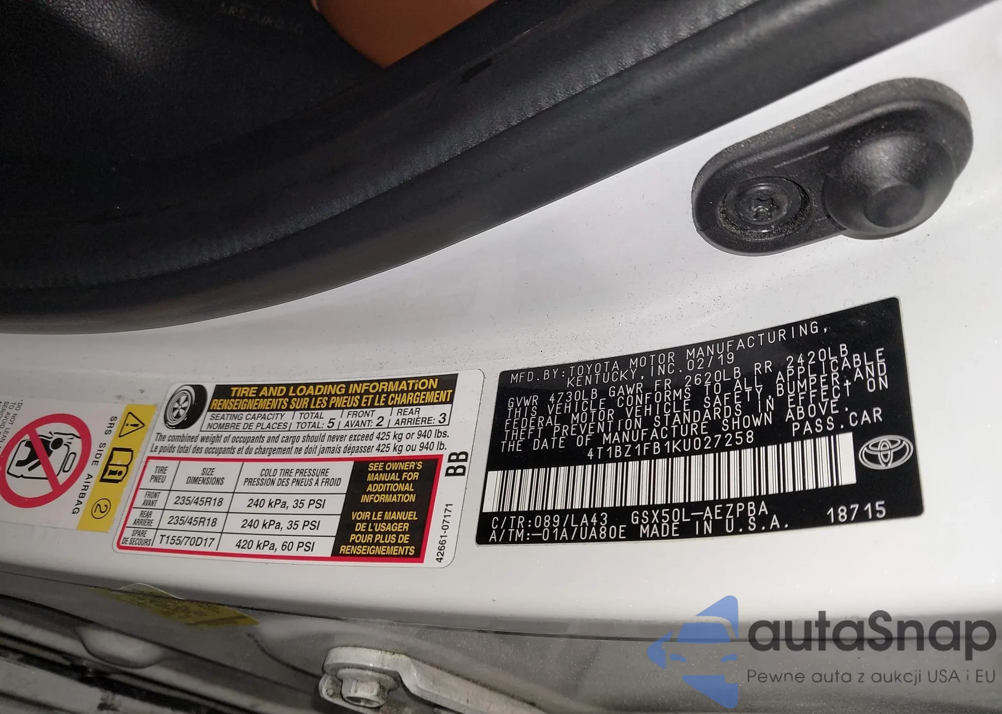 • VIN 4T1BZ1FB1KU027258