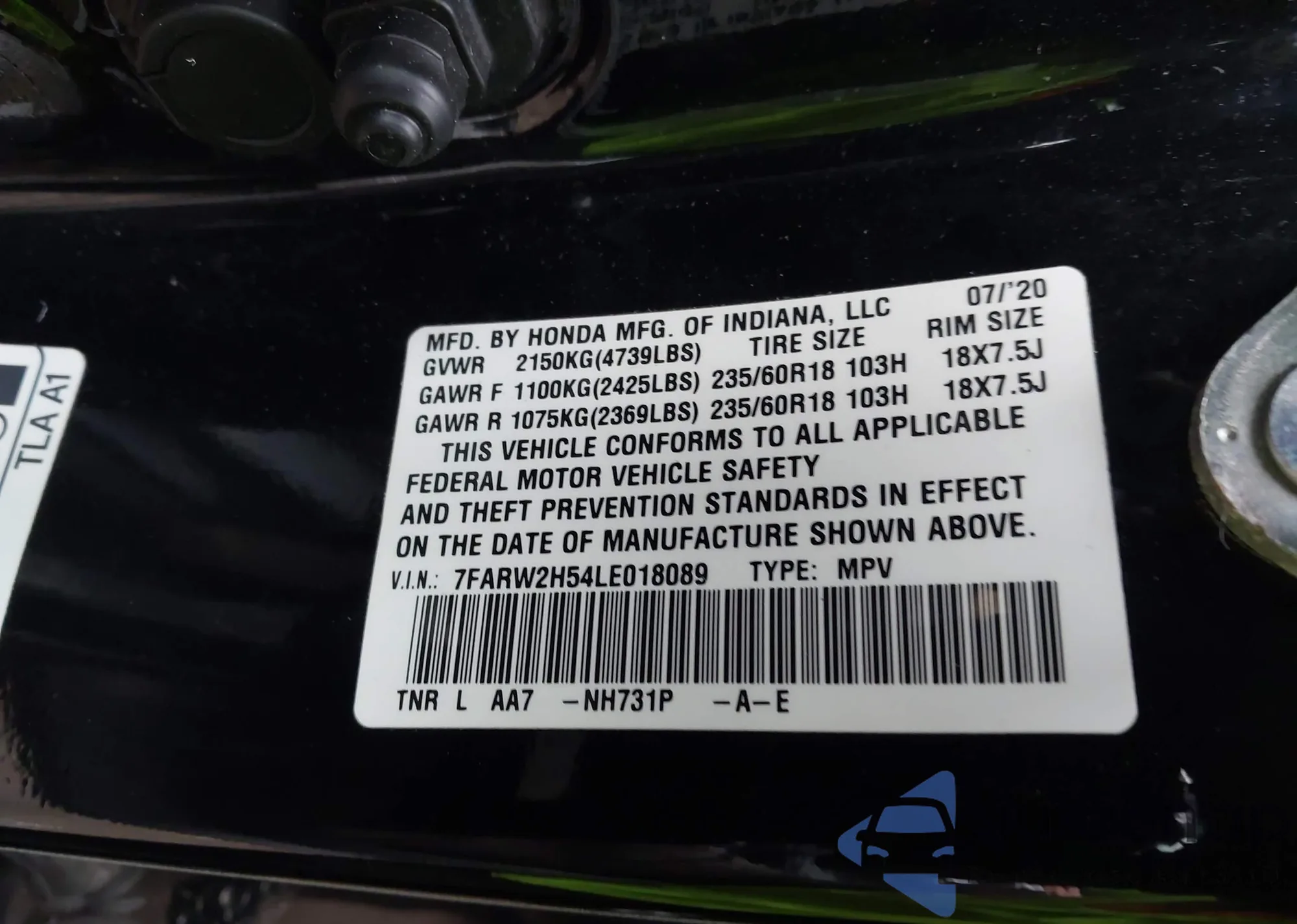 • VIN 7FARW2H54LE018089
