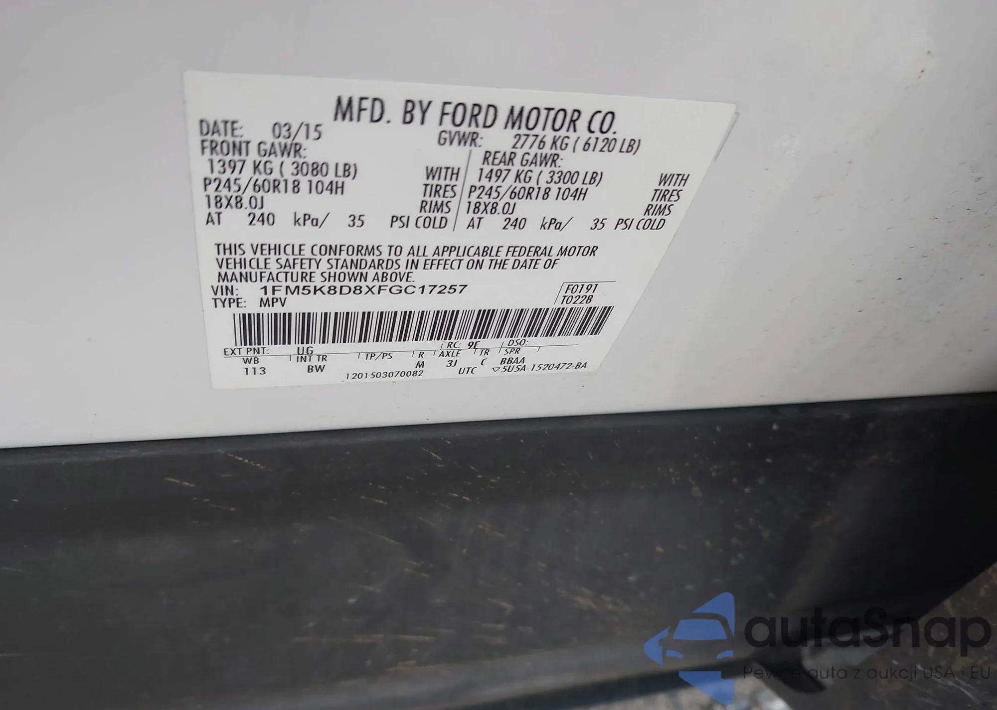 LOT: 44103594 VIN: 1FM5K8D80HGC22244
